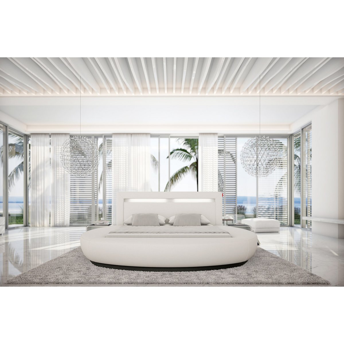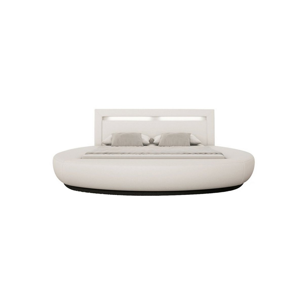 Dit ronde designbed is een opvallend statement voor de moderne slaapkamer. De unieke vorm en geïntegreerde LED-verlichting in het hoofdbord maken dit bed direct tot het visuele middelpunt van de ruimte. De bekleding van hoogwaardig kunstleer geeft het bed een luxe uitstraling en is bovendien onderhoudsvriendelijk.