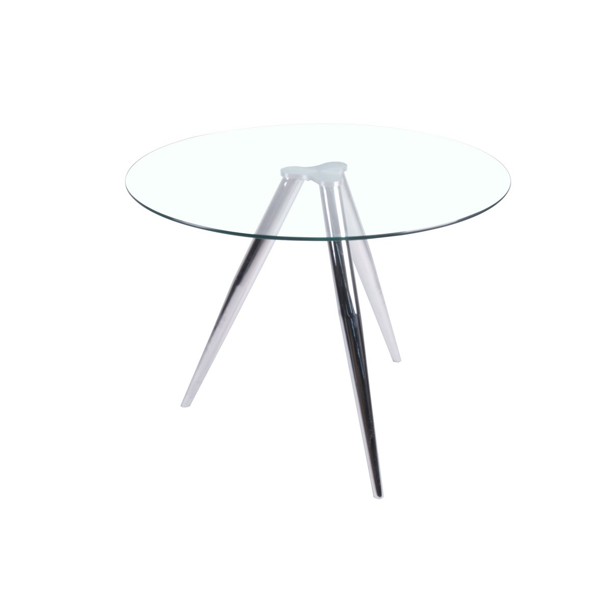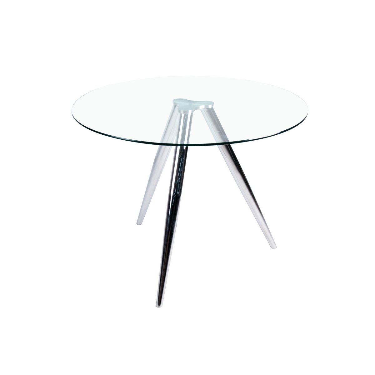 – Ronde eettafel met helder glazen blad en moderne uitstraling