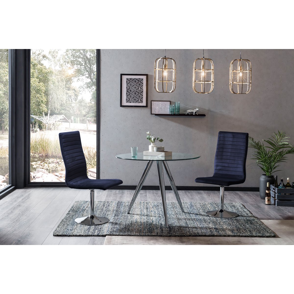 Met een diameter van 100 cm biedt deze tafel comfortabel plaats aan maximaal 4 personen. De 10 mm dikke glasplaat is stevig en stabiel, terwijl de drie conische, verchroomde tafelpoten zorgen voor een solide basis en een moderne uitstraling. Deze tafel is meer dan alleen een plek om te eten; het is ook een fijne plek voor lange gesprekken, koffie met vrienden of gezellige momenten met familie.