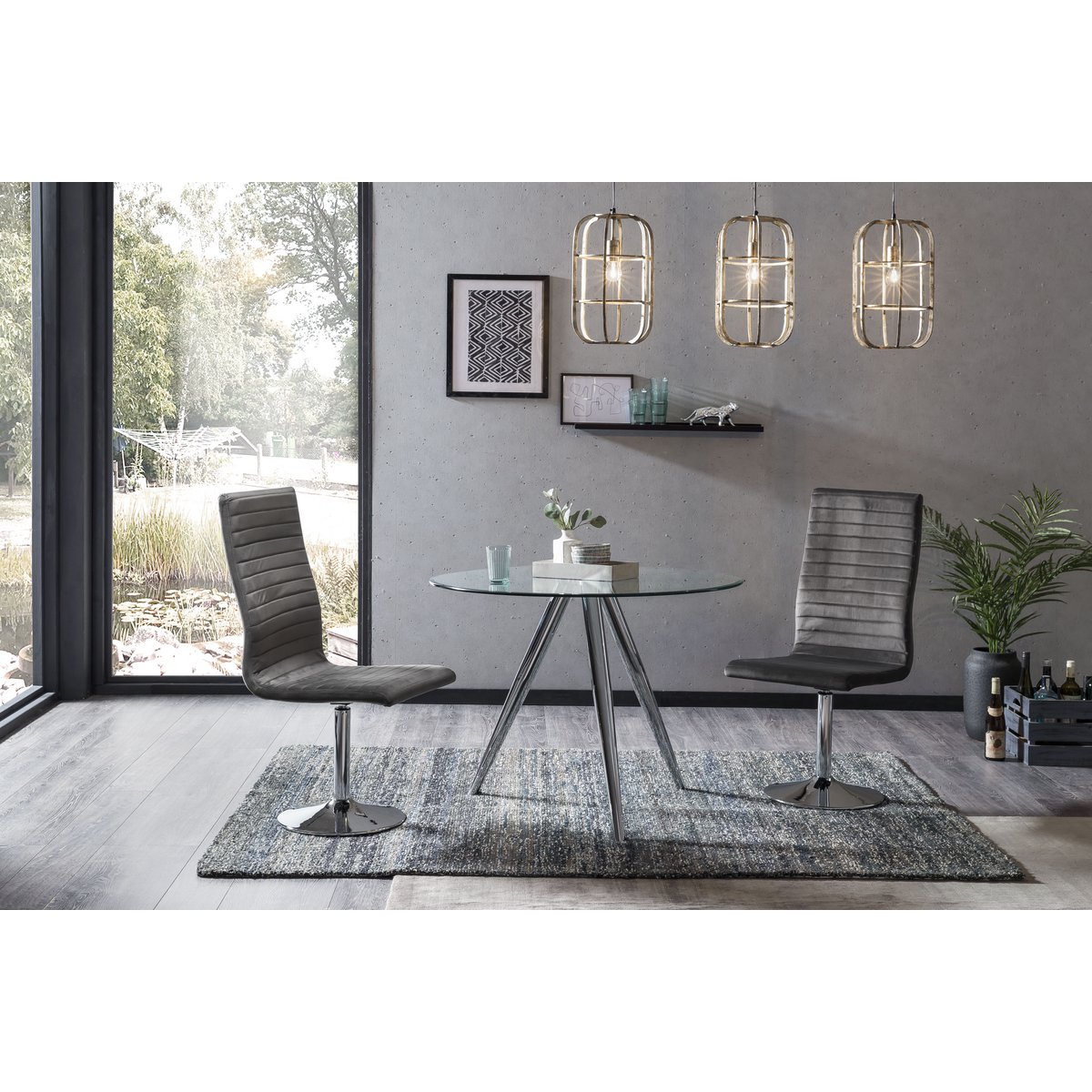 Deze ronde eettafel vormt een stijlvol middelpunt in iedere eethoek en combineert een moderne uitstraling met praktisch gebruiksgemak. Het tafelblad is gemaakt van helder glas en geeft de tafel een lichte, ruimtelijke look die moeiteloos past in verschillende interieurs. Dankzij het tijdloze ontwerp is deze tafel een elegante keuze voor zowel de eetkamer als een bistrohoek.