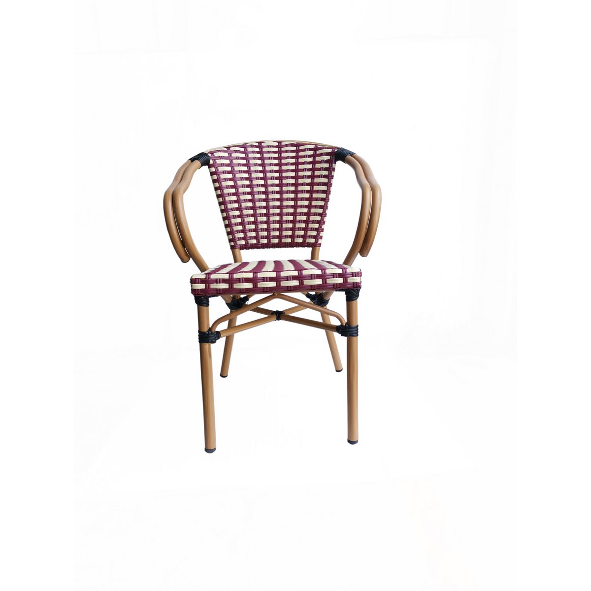 Deze rotan stoel combineert een luchtige uitstraling met een stevige en praktische constructie. Dankzij het lichte aluminium frame is de stoel stabiel en duurzaam, terwijl het handgemaakte polyrattan weefsel in zitting en rugleuning zorgt voor een natuurlijke en warme uitstraling. De vorm doet denken aan een klassieke koffiehuisstoel en past daardoor moeiteloos in uiteenlopende interieurstijlen, van vintage en rustiek tot industrieel en modern.
