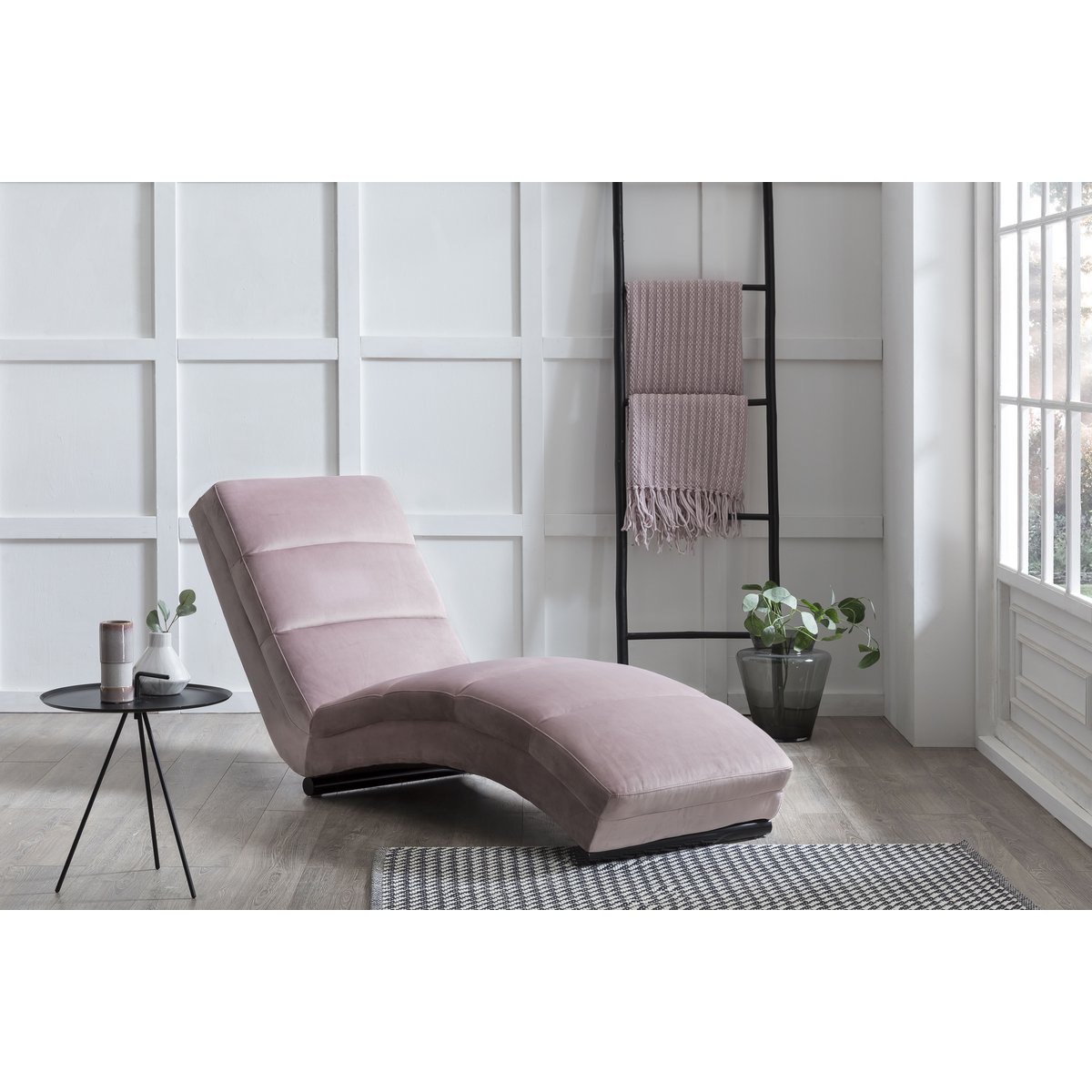 Deze elegante chaise longue is ontworpen voor ultiem comfort en een stijlvolle uitstraling. De zachte bekleding in fluweellook geeft het meubel een luxe karakter, terwijl de zwart gepoedercoate metalen poten zorgen voor een modern en stabiel geheel. Het ergonomisch gevormde ligoppervlak en de comfortabele vulling maken dit ligbed perfect voor rustmomenten.