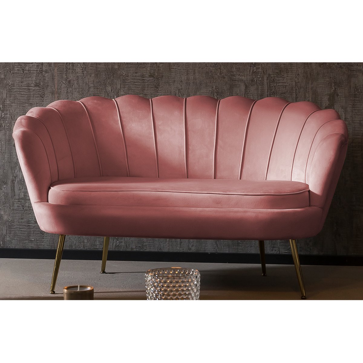 Deze moderne bank in schaaldesign brengt luxe, zachtheid en comfort samen in één opvallend meubelstuk. De stijlvolle bekleding in fluwelen look geeft de bank een elegante uitstraling, terwijl het goudkleurige metalen frame zorgt voor een chic contrast en een stabiele basis. De afgeronde vormen van de zitting en rugleuning maken het geheel extra uitnodigend.