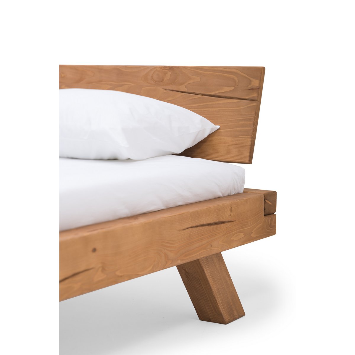 Met dit rustieke balkenbed van hoogwaardig massief vurenhout haal je warmte, karakter en natuurlijke charme in de slaapkamer. Het robuuste bedframe is gemaakt van massief hout en straalt dankzij de levendige houtstructuur, groeischeuren en knoestgaten een authentieke en krachtige uitstraling uit. De karakteristieke hoekverbindingen benadrukken het ambachtelijke ontwerp en maken van dit bed een opvallend meubelstuk met een uniek karakter.