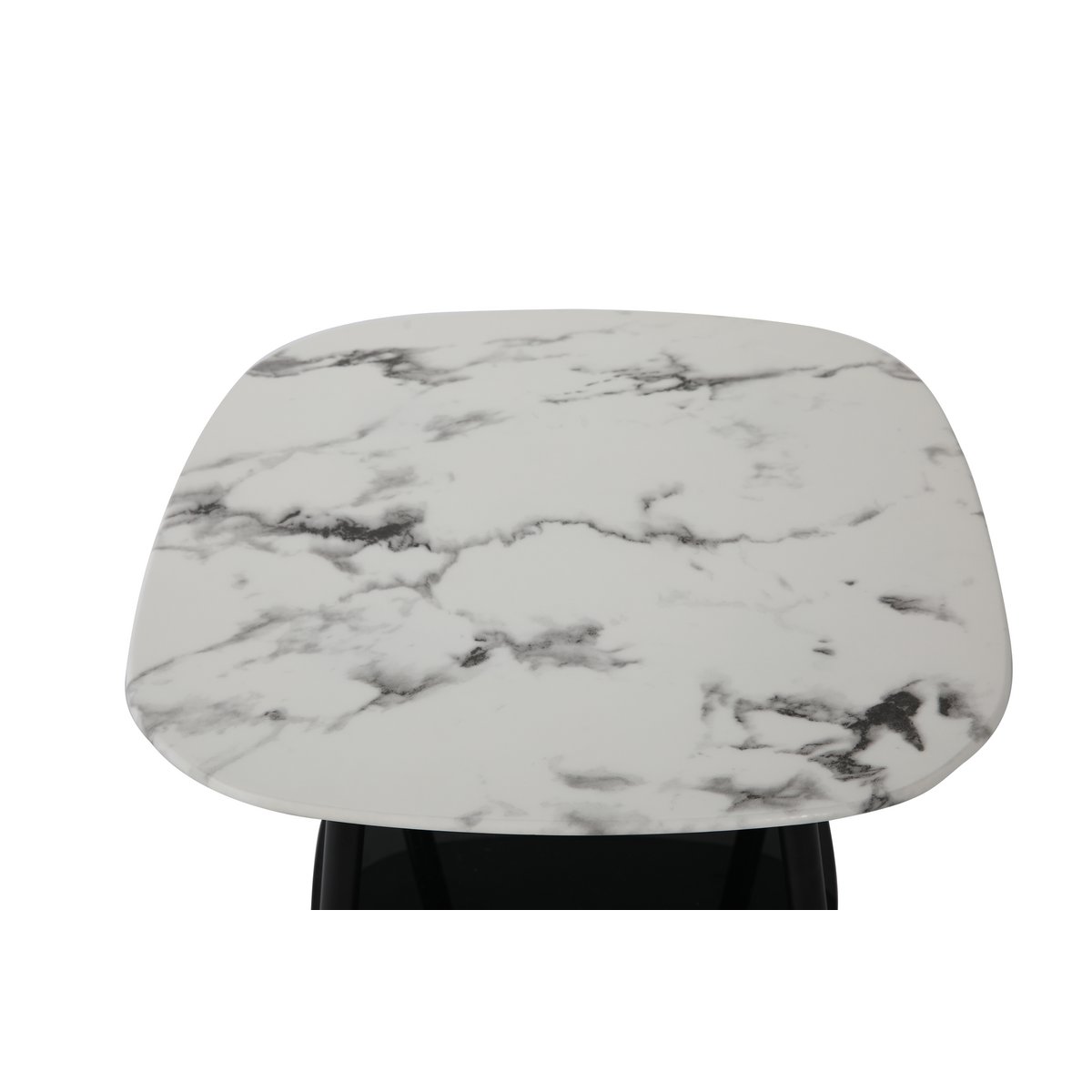 Deze elegante bijzettafel met een delicaat metalen frame en een afgerond glasblad in marmerlook zorgt ervoor dat uw woonkamer er veel eleganter uitziet. Een extra plank in zwart glas verhoogt ook de functionaliteit.