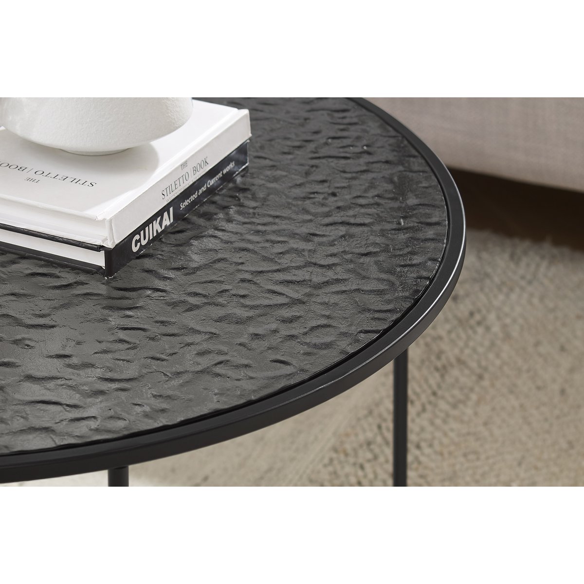 Een salontafel is meer dan alleen een functioneel meubel – het vormt het hart van elke woonkamer en zorgt voor een uitnodigende sfeer. De salontafel met een diameter van 80 cm in elegant zwart combineert modern ontwerp met materialen van hoge kwaliteit en wordt dus een hoogtepunt van elke meubels. De ronde salontafel boeit met zijn minimalistische elegantie. Het stevige metalen frame is ruw poedercoat, wat niet alleen zorgt voor een aantrekkelijke look, maar ook voor duurzaamheid en stabiliteit. De zwarte poedercoating geeft de tafel een mat en nobel oppervlak dat idealiter past in moderne woonstijlen. Het tafelblad gemaakt van rookglas is een ander hoogtepunt van dit meubelstuk. Het bestaat uit gesmolten glas met een structuurlook, die de tabel een uniek textuur en diepte -effect geeft. Het rookglas zorgt voor een subtiel spelletje licht en schaduw en stelt stijlvolle accenten in zonder opdringerig te zijn. Met een plaatdikte van ongeveer 6 mm biedt de glazen plaat een perfecte balans tussen stabiliteit en elegantie. Met een diameter van 80 cm heeft deze salontafel de ideale maat om ruimte te vinden in zowel kleinere als grotere woonkamers. Het biedt voldoende ruimte om tijdschriften te presenteren, decoratieve items of een gezellige kop koffie. De ronde vorm zorgt voor een harmonieuze uitstraling en vergemakkelijkt de integratie in verschillende kamerconcepten. Deze salontafel is niet alleen praktisch, maar ook veelzijdig. Het past perfect in moderne en minimalistische woonruimtes, maar kan ook dienen als een elegant contrast in klassieke faciliteiten. Dankzij het hoogwaardige materialen en goed gedachtend ontwerp, is het geschikt voor dagelijks gebruik en speciale gelegenheden. Plaatdikte ongeveer 6 mm, ruw poedercoated, rookglazen plaat gemaakt van gesmolten glas.