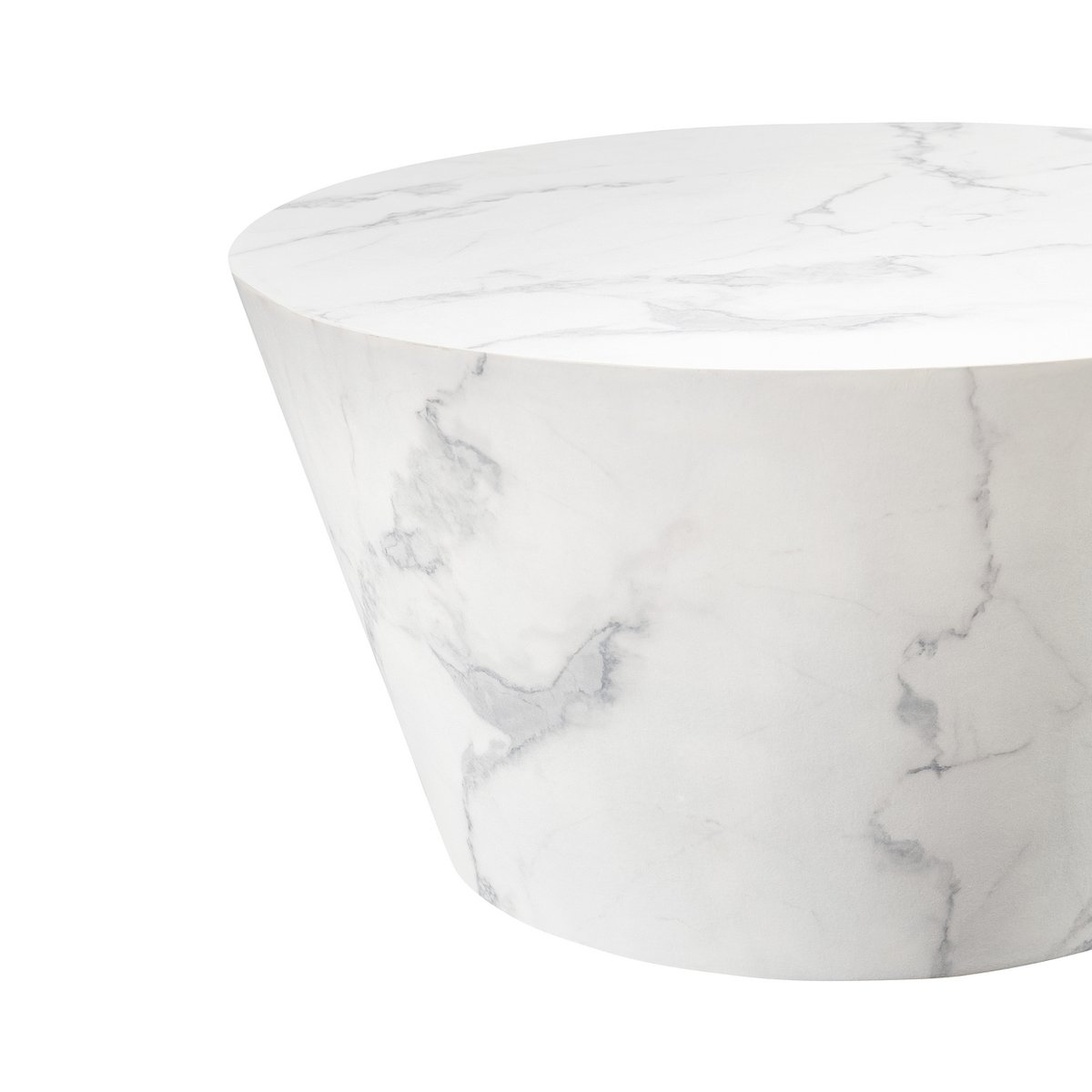 Deze salontafel met een oppervlak met verijdeld wit marmereffect brengt een vleugje luxe en stijl in uw woonkamer. Dit meubelstuk combineert modern design met functionaliteit en is de perfecte aanvulling op elk huis. Het verijdelde oppervlak in witte marmerlook geeft de salontafel een elegante en tijdloze uitstraling. De realistische marmerlook zorgt voor een elegante en moderne uitstraling die naadloos te integreren is in diverse interieurstijlen. De salontafel wordt volledig gemonteerd geleverd, zodat je hem in je woonkamer kunt plaatsen en meteen kunt gebruiken. Dit bespaart tijd en moeite en zorgt ervoor dat de tafel stabiel en veilig staat. Met een diameter van 80 cm biedt de salontafel voldoende ruimte voor tijdschriften, drankjes en decoratieve voorwerpen zonder al te veel ruimte in beslag te nemen. De ronde vorm past harmonieus in verschillende ruimteconcepten en zorgt voor een aangename sfeer. Deze salontafel is niet alleen een praktisch meubelstuk, maar ook een stijlvol statement dat een speciaal tintje aan elke kamer geeft. Ø voet ca. 55 cm