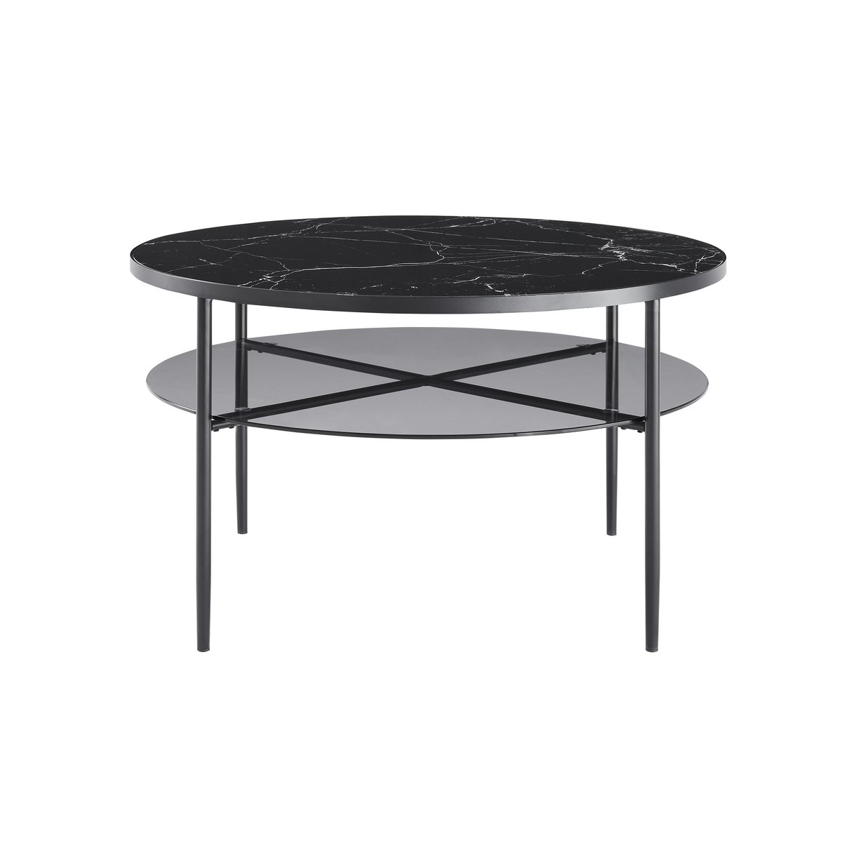 Een salontafel is meer dan alleen een functioneel meubel – het zet accenten en vormt de sfeer van uw woonkamer. De ronde salontafel met een diameter van 81 cm in zwart gecombineerd tijdloos ontwerp met materialen van hoge kwaliteit en biedt extra voordelen dankzij de twee opslagruimte. Deze salontafel maakt indruk op een harmonieuze combinatie van elegantie en functionaliteit. Het frame is gemaakt van robuust metaal met een ruwe poedercoating, die zorgt voor een duurzaam, mat oppervlak en onderstreept een moderne look. Het bovenste tafelblad is verfijnd met een stijlvolle marmeren print die een vleugje luxe naar uw huis brengt. De lagere opslagruimte bestaat uit rookglas, dat een interessant licht- en schaduweffect creëert. Beide platen hebben een dikte van ongeveer 6 mm, die perfect stabiliteit en lichtheid combineren. Met twee tafelbladen boven elkaar gerangschikt, biedt de salontafel veel ruimte voor uw behoeften. De bovenste plaat is ideaal voor het parkeren van dranken of de presentatie van decoratie, terwijl de lagere rookglasplaat extra opslagruimte biedt voor tijdschriften, boeken of afstandsbedieningen. Dus je leefruimte blijft altijd tegelijkertijd netjes en stijlvol. Met een diameter van 81 cm is de tafel groot genoeg om een centrale plaats in de woonkamer in te nemen zonder omvangrijk te zijn. De ronde vorm zorgt voor een harmonieuze uitstraling en kan gemakkelijk worden gecombineerd met andere meubels. De salontafel Ø 81 cm in zwart met twee opslagruimte maakt indruk op zijn succesvolle mix van modern ontwerp en praktische functionaliteit. Het samenspel van metalen frame, marmeren afdrukken en rookglas geeft uw woonkamer een stijlvol tintje. Deze tabel is niet alleen een functioneel meubel, maar ook een esthetisch hoogtepunt dat elke kamer upgrade. Plaatdikte 2x ca. 6 mm, staaf ruw poedercoat, bovenste plaat met marmerafdruk + rookglasplaat hieronder.
