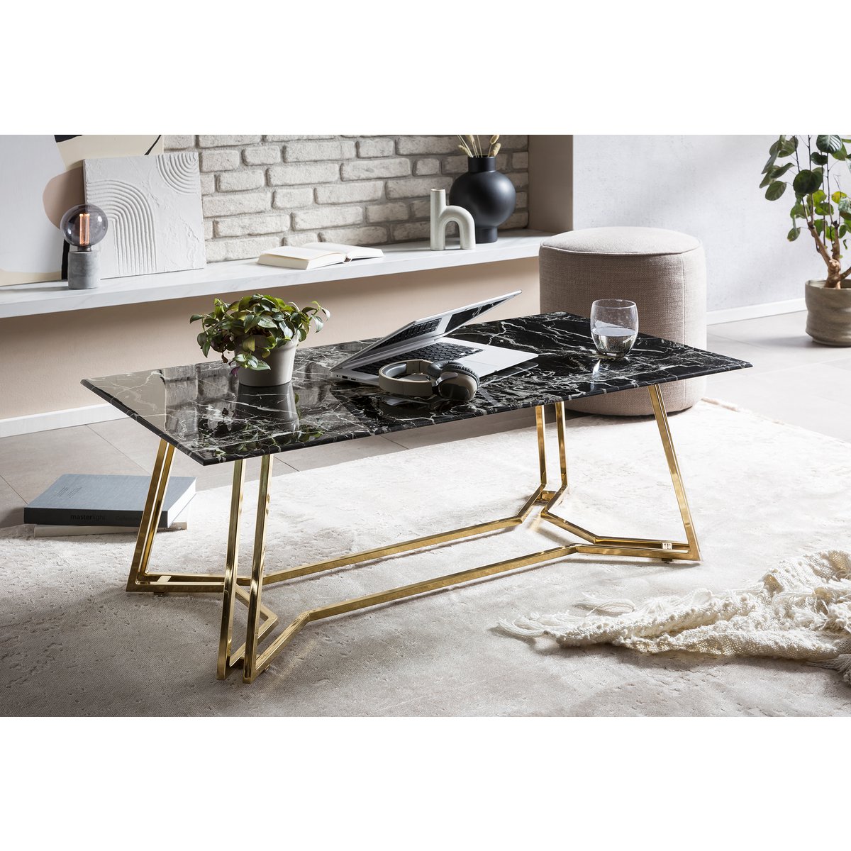 – Luxe salontafel met zwart marmerlook blad