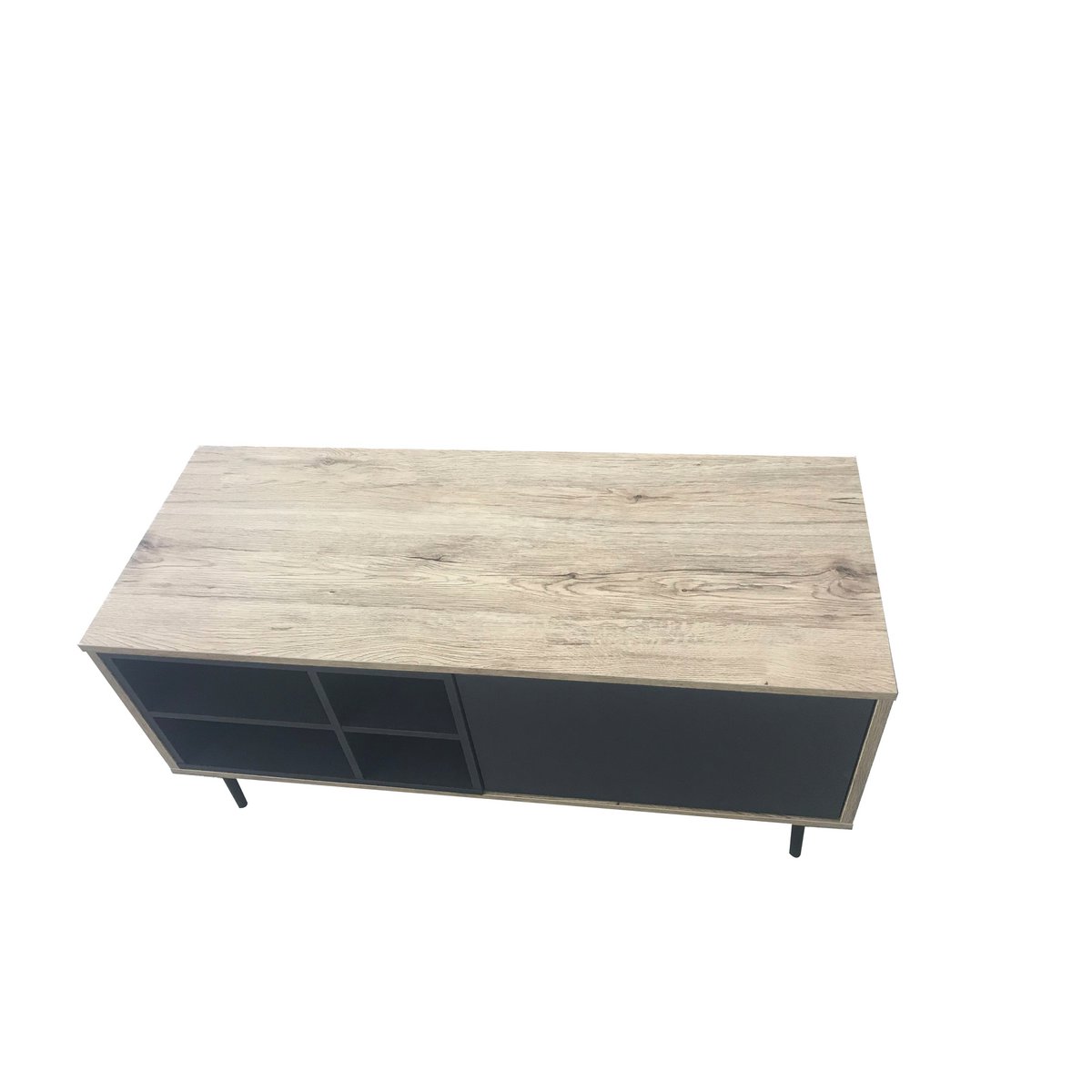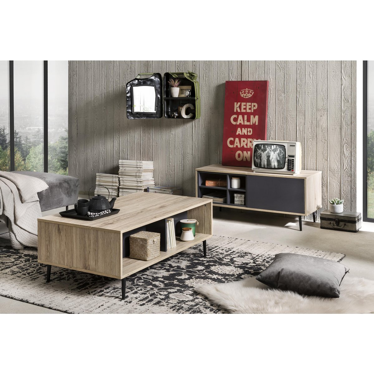 Het dressoir is voorzien van open vakken, een deur en een legplank, waardoor u verschillende spullen netjes kunt opbergen en organiseren. Metalen ladegeleiders en scharnieren maken het meubel geschikt voor dagelijks gebruik, terwijl het onderhoudsvriendelijke oppervlak zorgt voor extra gebruiksgemak. Het meubel wordt gedemonteerd geleverd en is ontworpen voor eenvoudige montage.