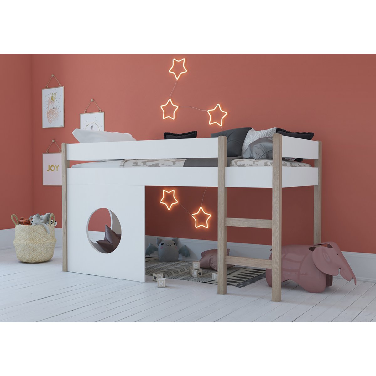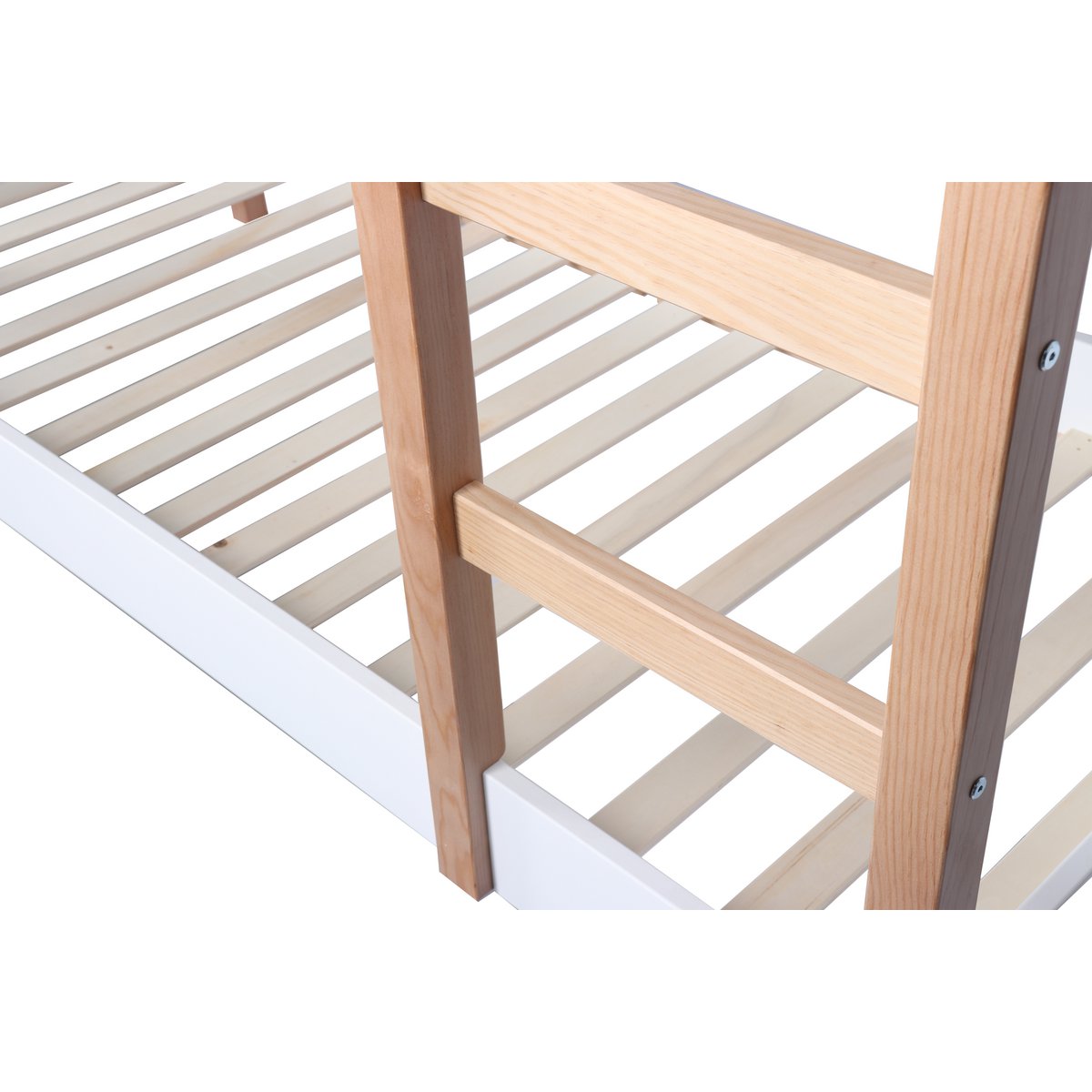 De omringende valbeveiliging biedt extra veiligheid tijdens het slapen, terwijl de meegeleverde lattenbodems zorgen voor een praktische en complete basis. Dankzij de eenvoudige, unisex uitstraling is dit stapelbed geschikt voor verschillende leeftijden en een breed scala aan interieurstijlen. Het bed is een ideale oplossing voor wie functionaliteit en stijl wil combineren in de kinderkamer.