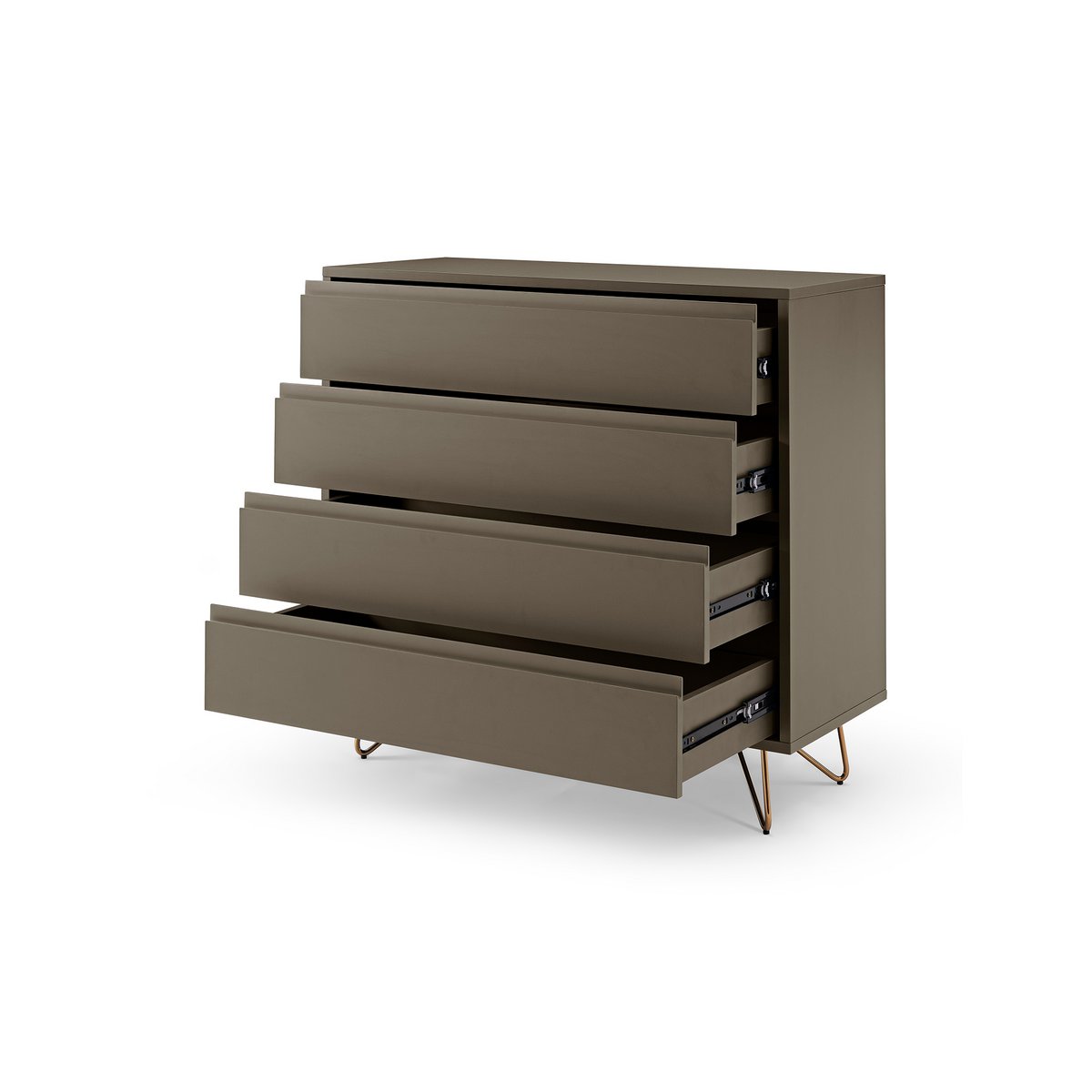 Met vier ruime lades biedt deze ladekast volop opbergruimte voor de kleine spullen van alledag. Zo bergt u accessoires, documenten of andere benodigdheden netjes en overzichtelijk op. De mat gelakte afwerking versterkt de moderne uitstraling en maakt deze kast tot een tijdloos meubel dat zich prachtig laat combineren met uw bestaande interieur.