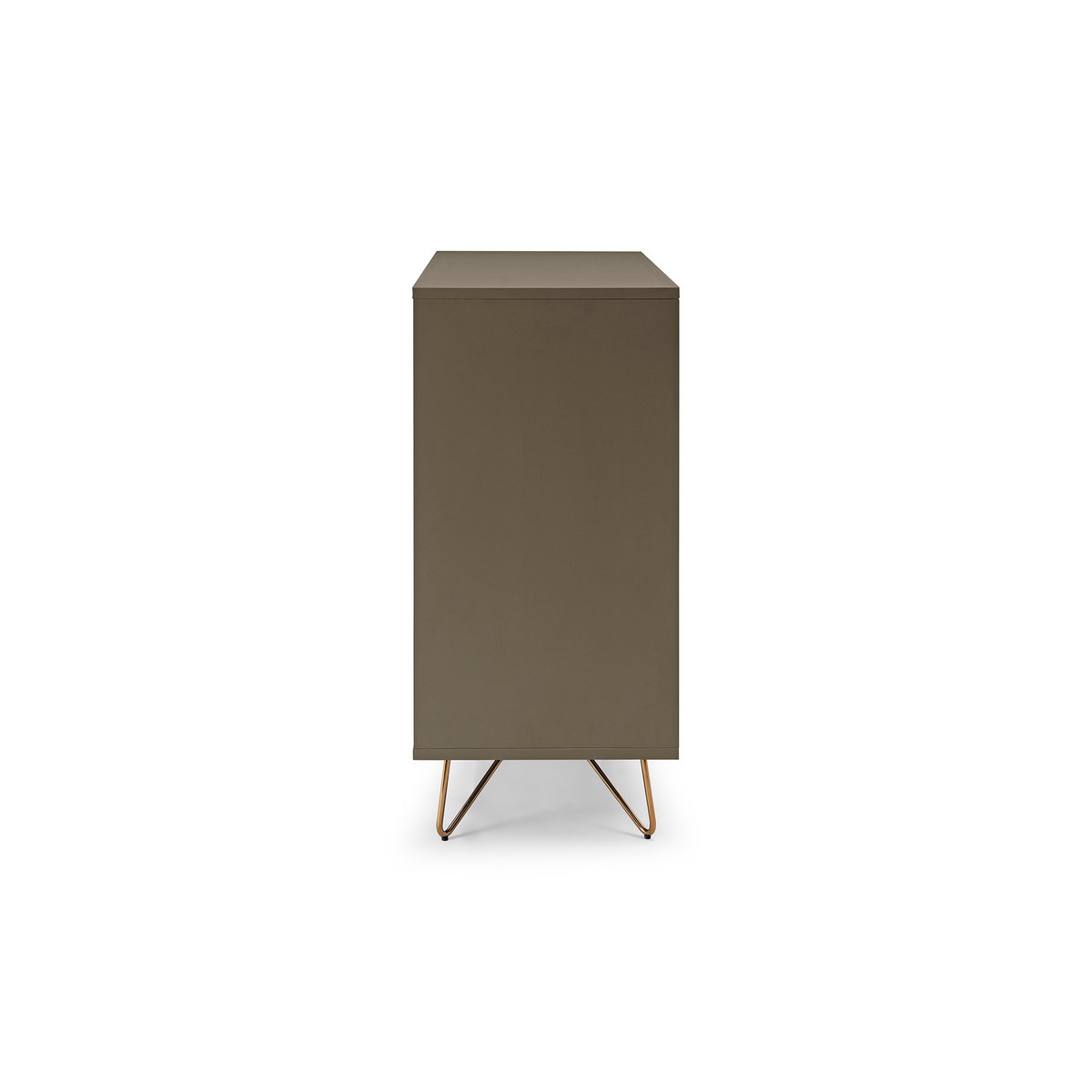 Deze moderne ladekast is een echte blikvanger met een stijlvol Scandinavisch design. De combinatie van rustige kleuren en elegante gouden metalen poten geeft het meubel een verfijnde en eigentijdse uitstraling. Dankzij het brede formaat en de strakke vormgeving past deze kast moeiteloos in de woonkamer, slaapkamer of hal.