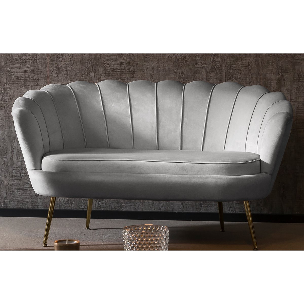 Deze moderne bank in schaaldesign combineert comfort, elegantie en een opvallende uitstraling in één bijzonder meubelstuk. De grijze bekleding met fluwellook geeft de bank een luxe en zachte uitstraling, terwijl het goudkleurige metalen frame zorgt voor een stijlvol contrast en een chique afwerking. De afgeronde zitting en rugleuning geven het ontwerp een vriendelijke en uitnodigende vorm.
