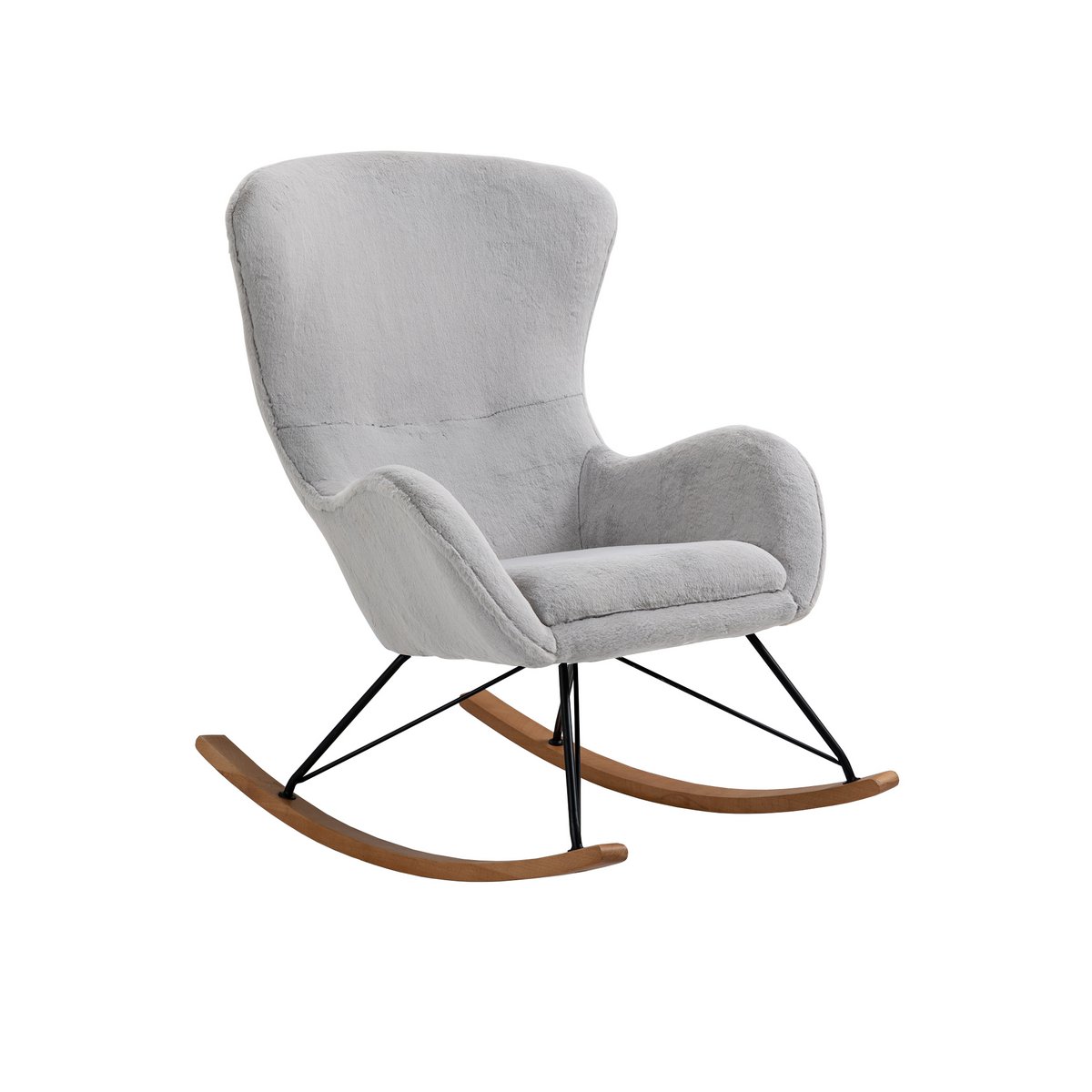 Deze schommelstoel is een comfortabel en stijlvol meubelstuk voor de woonkamer, slaapkamer of leeshoek. De zachte bekleding in lamsvachtlook geeft de stoel een warme en uitnodigende uitstraling, terwijl de combinatie van zwart metaal en massief eikenhouten sledes perfect aansluit bij een modern Scandinavisch interieur.