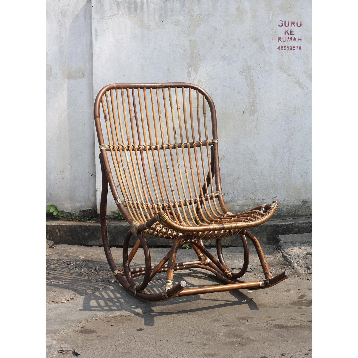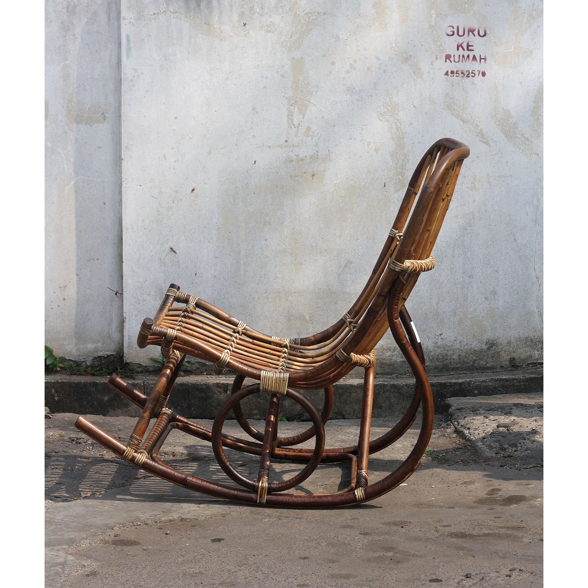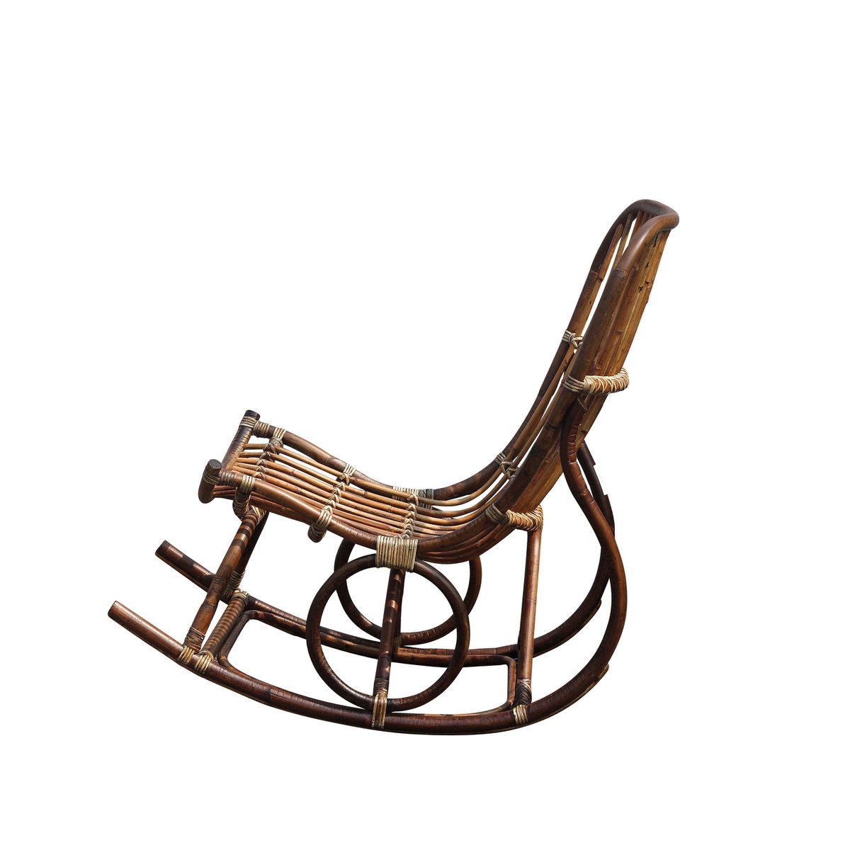 – Handgemaakte schommelstoel van ongepeld rotan