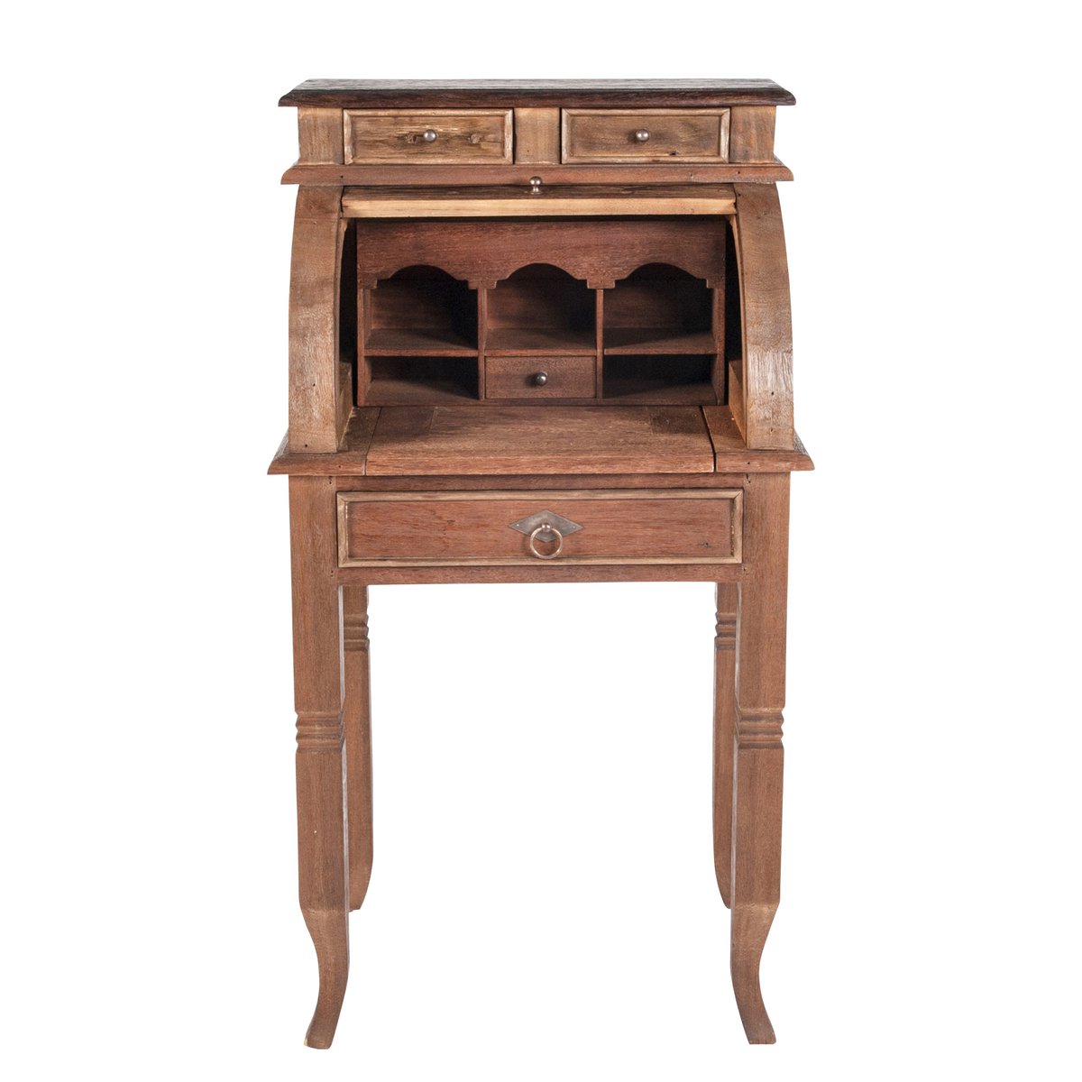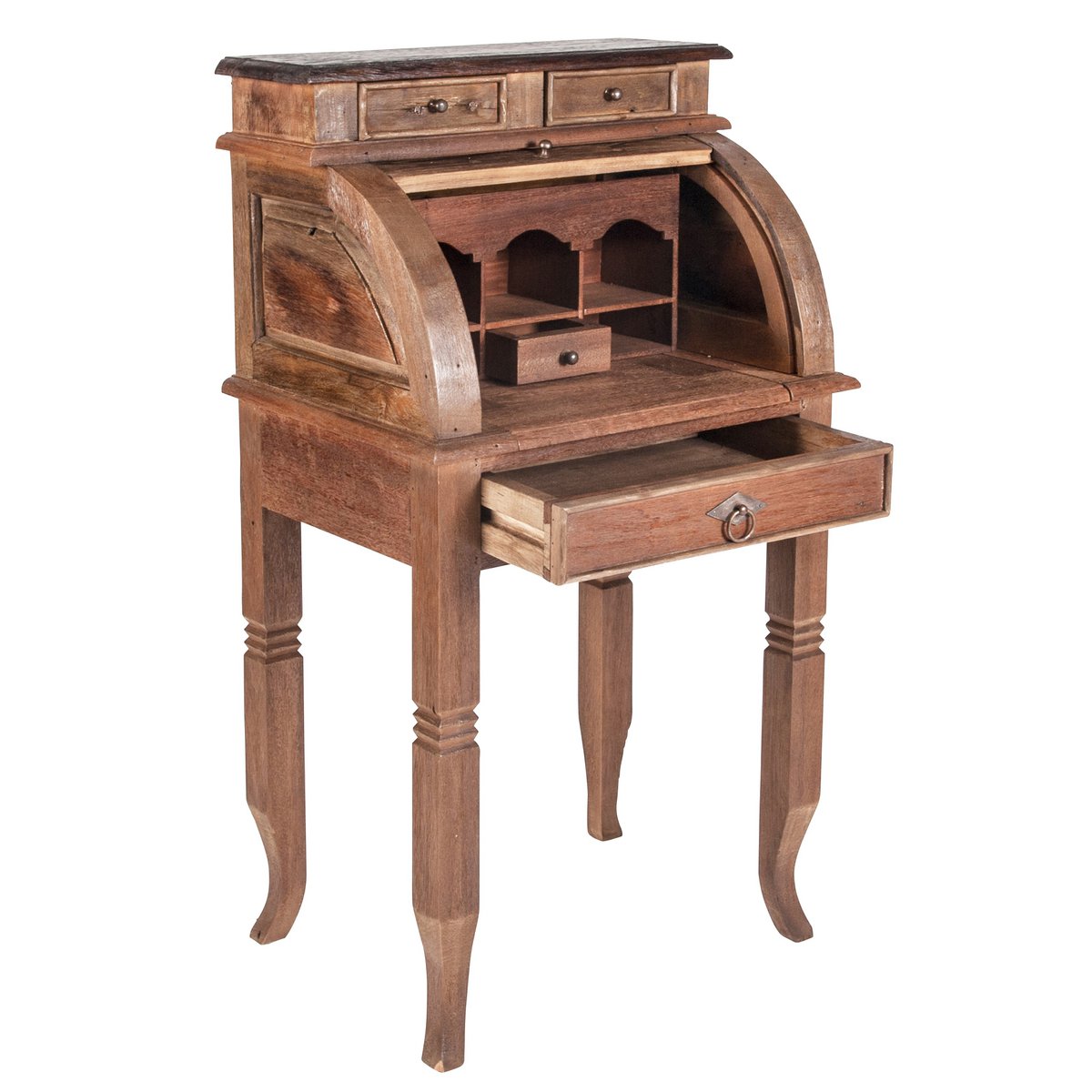 Achter het rolluik bevinden zich vijf open vakken en een kleine lade voor kantoorbenodigdheden, terwijl de grote lade onder het schrijfblad en de twee kleinere lades bovenin nog meer opbergruimte bieden. Hierdoor is deze secretaire ideaal als sfeervolle werkplek in de woonkamer, slaapkamer of hal.