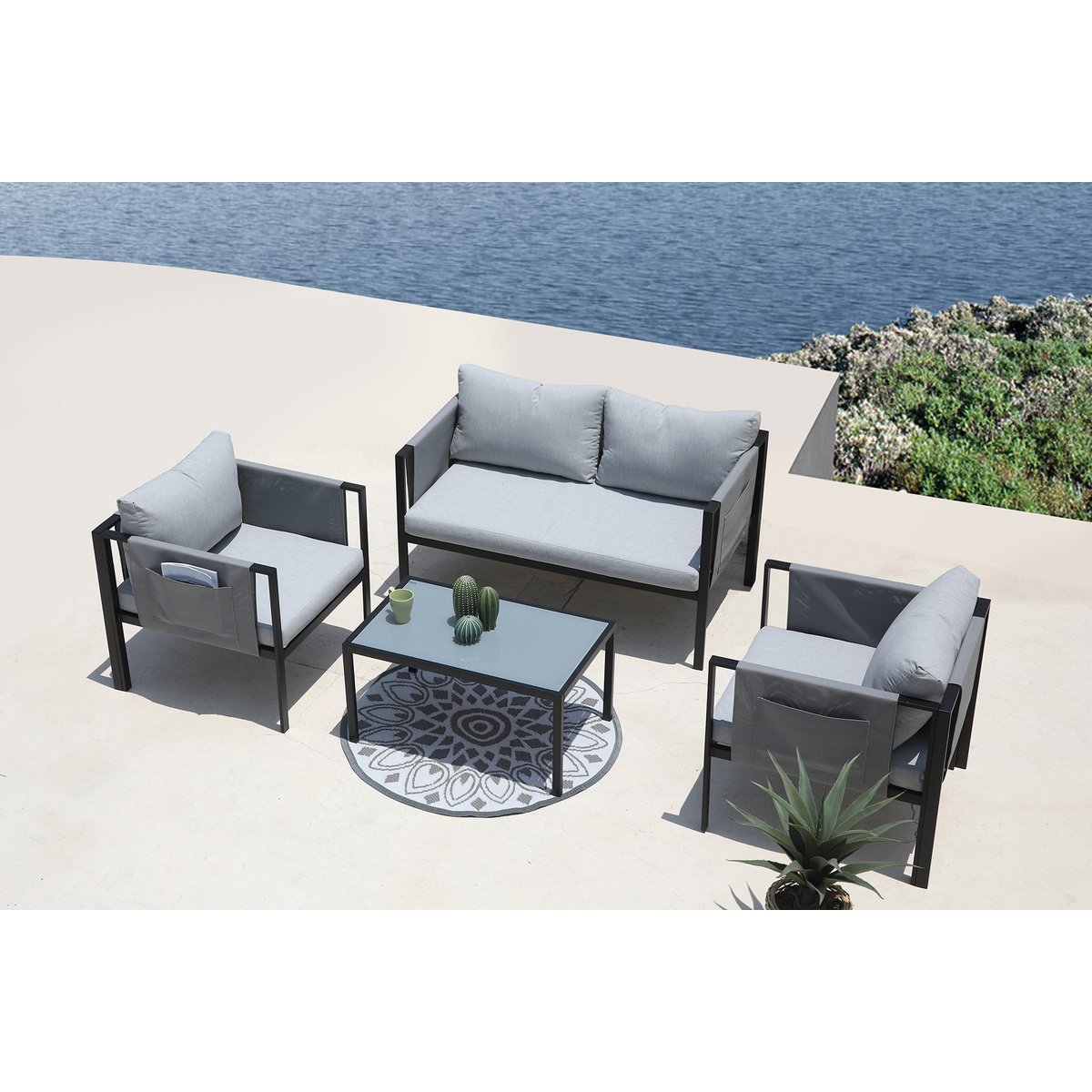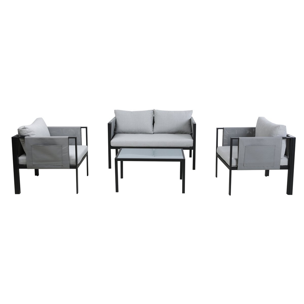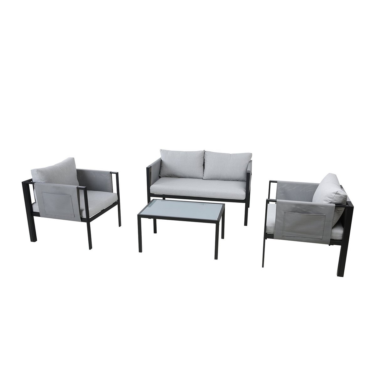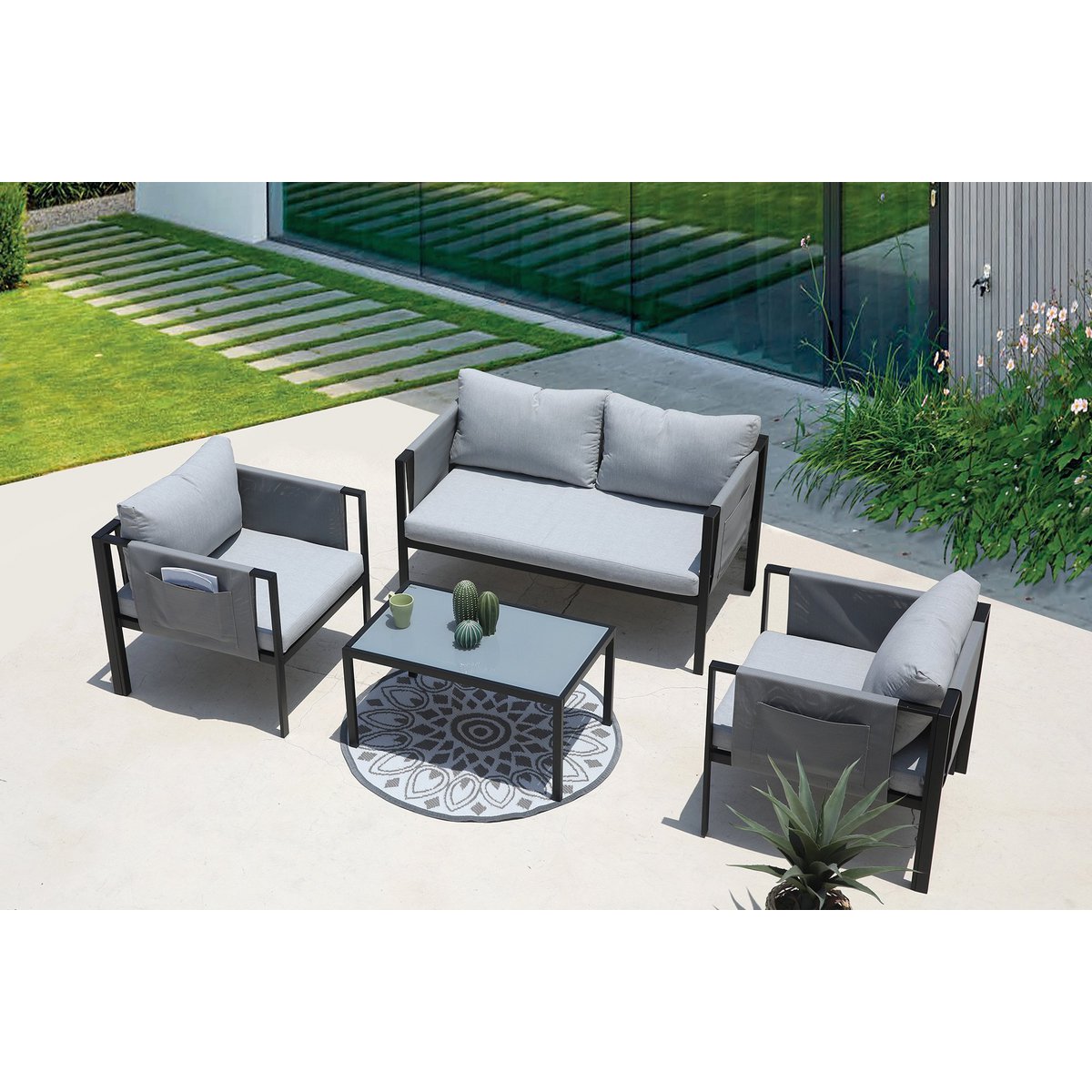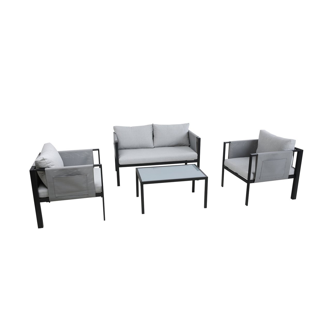 Deze moderne Gartensitzgruppe, bestehend aus een 2-Sitzer, 2 Sesseln, een Couchtisch, sowie Sitz- en Rückenkissen, biedt Sitzgelegenheiten voor 4 Personen. Sterf ca. 9 cm hoge zitkussens, zodat u in uw favoriete zitkussen kunt genieten van een optimaal zitcomfort. Die Essgruppe is de ideale Lösung für Garten, Terrasse, Wintergarten usw. en op de Platz voor gesellige Runden, familie- of grillbanen. Het handvat uit de staal is bijzonder strapazierfähig, robuust en ideaal voor de einsatz in outdoor-toepassingen. Abgerundet is een modern-gradiëntlook door een tegelplaat uit gehard en gesatineerd glas, sowie grauen zitpolstern. De accessoires van de armleuningen schilderen samen met sieraden een praktische Seitentasche.
