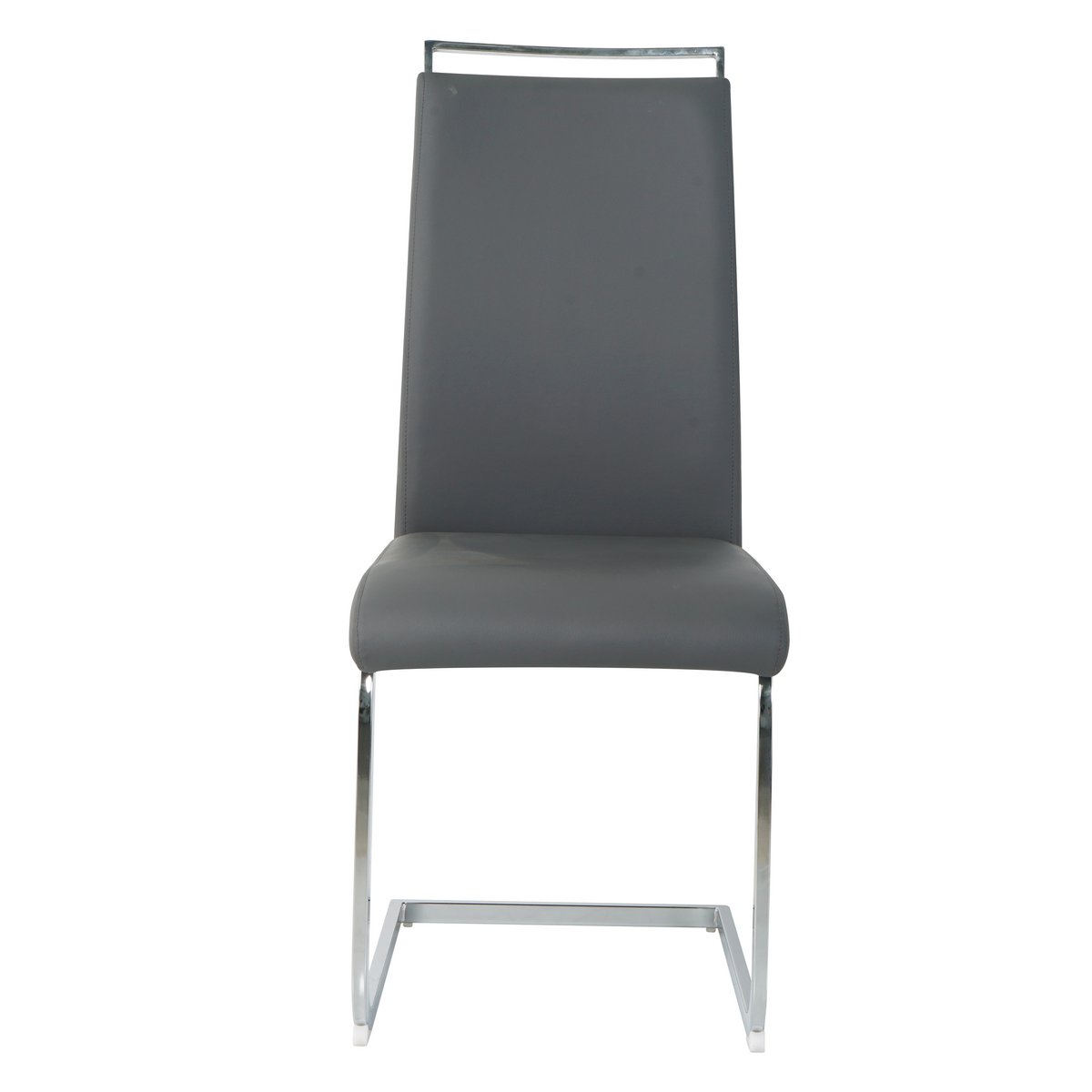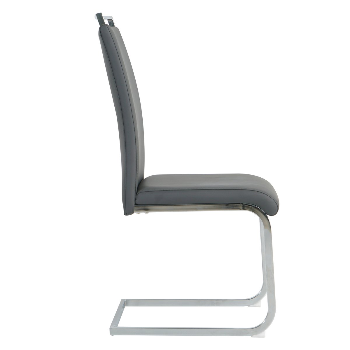 Deze stijlvolle set van 2 stoelen biedt niet alleen uitzonderlijk zitcomfort, maar ook een modern design dat past in elke woonomgeving. De stoelen hebben een robuust sledeframe dat zorgt voor een zachte vering en een comfortabele zitervaring. Dankzij de hoogwaardige golfbasisvering geniet u ook bij langdurig zitten van optimaal comfort. De poten van de stoelen zijn gemaakt van verchroomd metaal, wat ze niet alleen stabiliteit geeft maar ook zorgt voor een elegante, eigentijdse uitstraling. De verchroomde poten zijn bovendien gemakkelijk schoon te maken en duurzaam. Ze zijn gemaakt van kunstleer en overtuigen door hun onderhoudsvriendelijke en duurzame eigenschappen. Kunstleer is niet alleen visueel aantrekkelijk, maar ook zeer praktisch in het dagelijks leven, omdat het gemakkelijk schoon te maken is en een hoge slijtvastheid heeft. Over het geheel genomen combineert deze set van 2 stoelen modern design, comfort en functionaliteit, waardoor het een uitstekende aanvulling is op uw eetkamer of kantoor. Zithoogte: ca. 47 cm, zitbreedte: ca. 42 cm, zitdiepte: ca. 45 cm, hoogte rugleuning: ca. 56 cm, zitdikte: ca. 120 kg metalen poten, vulling: polyetherschuim, vering: golfbasisvering, zitcomfort: middelhard