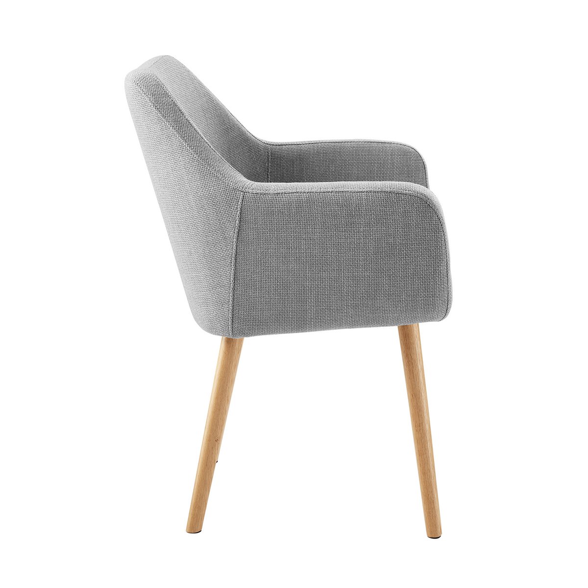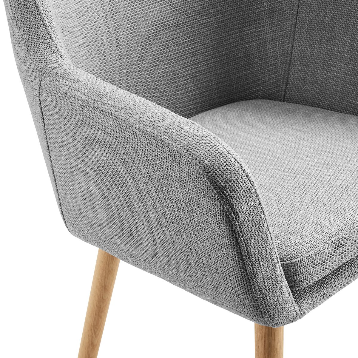 Tijdloos mooi met Scandinavische flair: deze fauteuil met gestructureerde stoffen bekleding is een goed figuur in veel interieurstijlen. Het structurele oppervlak van de Oeko-Tex gecertificeerde en PFC-vrije stof geeft de hoes een driedimensionaal en gemêleerd effect. Robuuste poten van massief eikenhout maken de Scandinavisch-chique uitstraling compleet. De hoge armleuningen en het gewatteerde zitkussen zorgen voor optimaal zitcomfort. Onze tip: Combineer twee kleuren stoelen met elkaar aan de eettafel. Dit zorgt voor een interessante en vrolijke sfeer. Zithoogte: ca. 48,5 cm, zitbreedte: ca. 44,5 cm, hoogte armleuning: ca. 42 cm hoes 5, pilling hoes 4, slijtvastheid 50.000 schuurcycli/Martindale, bekledingsmateriaal Oeko-Tex gecertificeerd en PFC-vrij, PU-schuim met hoge dichtheid – 25/70 – dichtheid + hardheid, max.