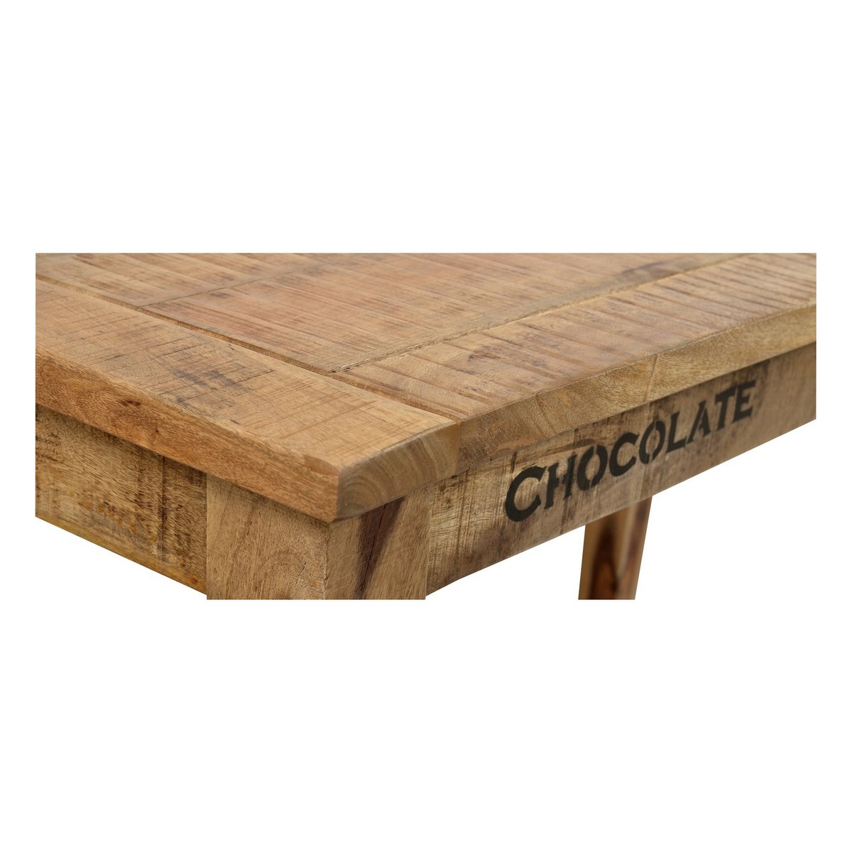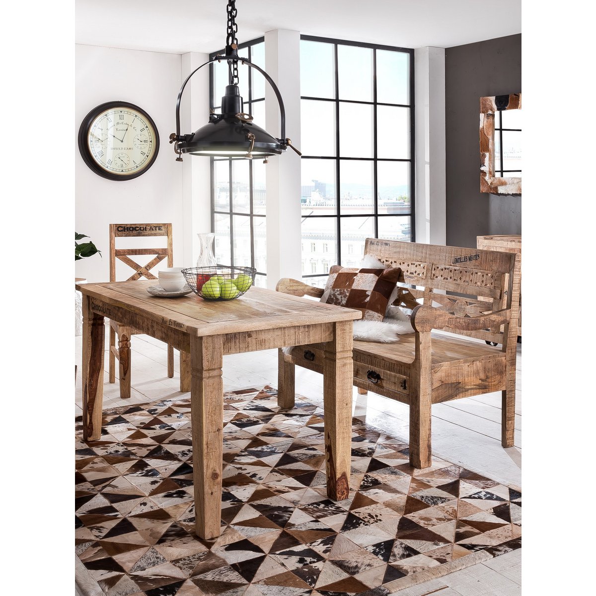 De combinatie van gelakt mangohout en antiek zwart metalen beslag geven deze eettafel zijn rustieke charme. Het gebruikte hout is afkomstig van oude schuren, huizen en rijstbakken en is bijzonder sterk en veerkrachtig. Het natuurlijke weer zorgt voor een bijzonder warme kleur die elke kamer in een mum van tijd gezellig maakt. De zwarte prints doen denken aan transport- en opbergdozen. Dankzij de natuurlijke uitstraling van mangohout is deze eettafel in vele woonstijlen te integreren. Je eethoek wordt een eyecatcher en een ontmoetingsplek om heerlijke uurtjes door te brengen met familie en vrienden. Hier gebeurt veel meer dan alleen de dagelijkse maaltijden. Bladdikte 20 mm, pootlengte 73 cm, afstand van basis tot frame 64 cm, pootlengte 73 cm, pootdikte 9×9 (in het onderste gedeelte 6×6).