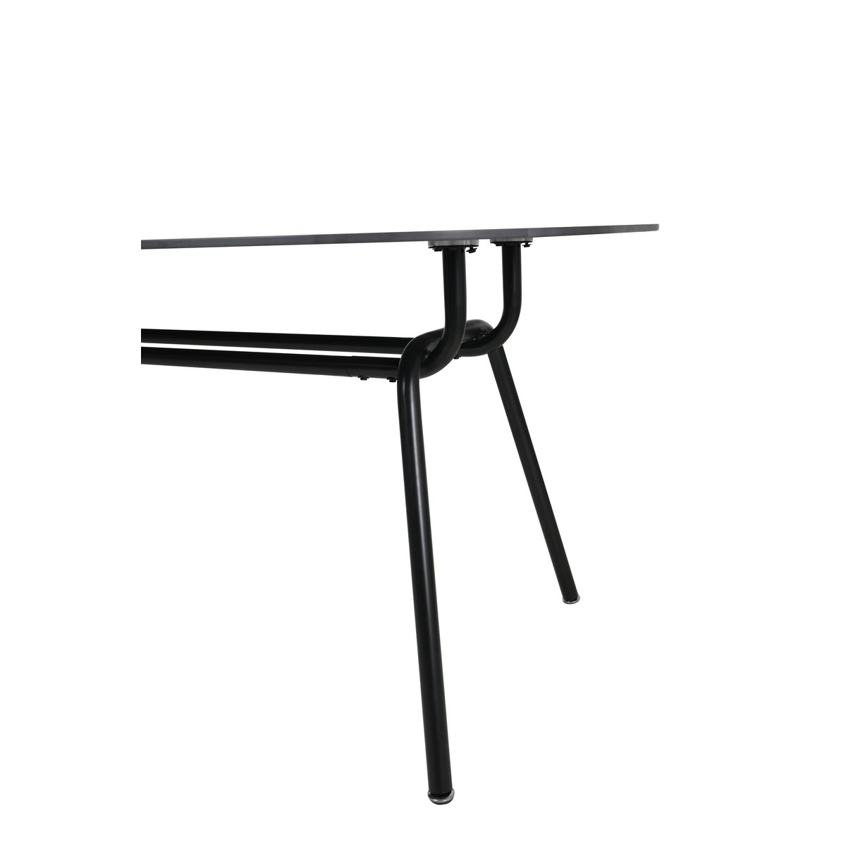 Deze chique eettafel met een delicaat metalen frame en een afgerond blad van donkergrijze sintersteen zorgt ervoor dat je eethoek er veel eleganter uitziet. Het oppervlak is zeer goed bestand tegen de algemene belastingen van het dagelijks leven. Het zwarte metalen frame ziet er echt geweldig uit. De eettafel – of het nu in de keuken of in de eetkamer is – is in veel huizen het middelpunt van het sociale leven. Hier eet en drink je samen, lach, speel en praat je. Het maakt het thuiswerken ook een stuk leuker.