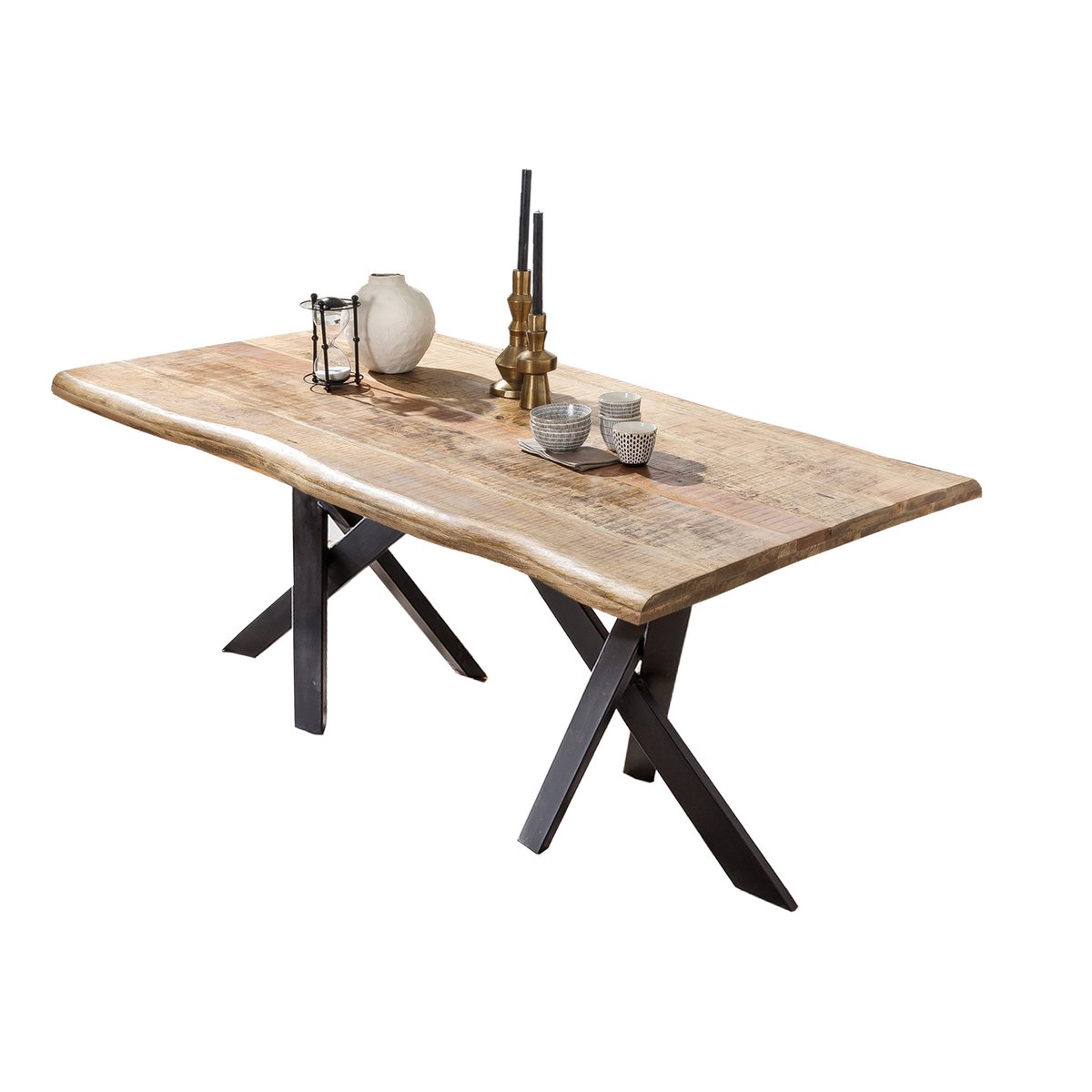 Als u een tafel met karakter en uniekheid wilt, bent u hier aan het juiste adres. Deze eettafel zal niet gemakkelijk terug te vinden zijn. Het massief houten tafelblad is gemaakt van mangohout en is zo uniek als de natuur. De natuurplaat maakt bovendien indruk met zijn totale dikte van 56 mm. Het moderne metalen frame in antiek zwart vormt een mooi contrast met het naturel tafelblad, zorgt voor een aangename industriële stijl en combineert comfort met koelte. Je eethoek wordt een eyecatcher en een ontmoetingsplek om heerlijke uurtjes door te brengen met familie en vrienden. Hier gebeurt veel meer dan alleen de dagelijkse maaltijden. Let op: Het tafelblad is een natuurproduct. Er kunnen knoestgaten, groeischeurtjes en afwijkende kleurversieringen aanwezig zijn, die geen reden tot klagen zijn maar juist de authenticiteit van het hout onderstrepen. Plaatdikte verdubbeld naar 56 mm, rechthoekige buizen 8×4 cm.