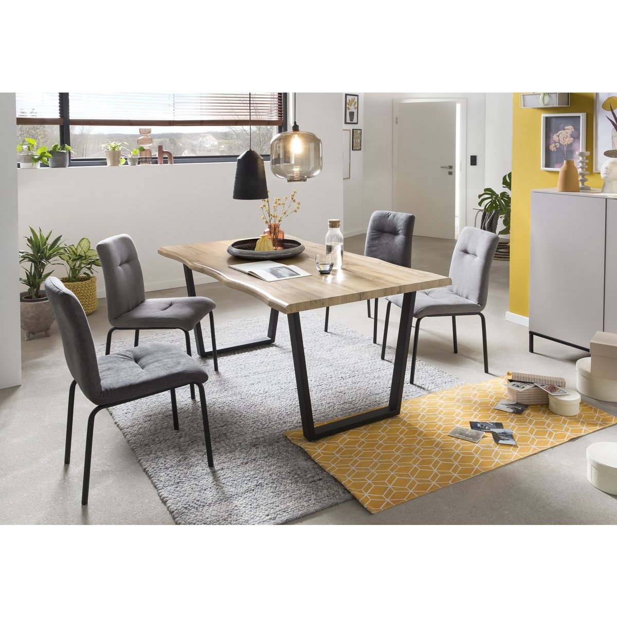 Deze stijlvolle eettafel maakt elke eethoek nog uitnodigender. Voor het tafelblad is gebruik gemaakt van hoogwaardig FSC-gecertificeerd MDF. De melamineharscoating maakt het oppervlak zeer goed bestand tegen de algemene belastingen van het dagelijks leven. Het gepoedercoate metalen frame ziet er echt indrukwekkend uit. De eettafel – of het nu in de keuken of in de eetkamer is – is in veel huizen het middelpunt van het sociale leven. Hier eet en drink je samen, lach, speel en praat je. Het maakt het thuiswerken ook een stuk leuker. Bladdikte 40 mm, frame 6×3 cm, afstand frame tot korte zijde 13 cm.