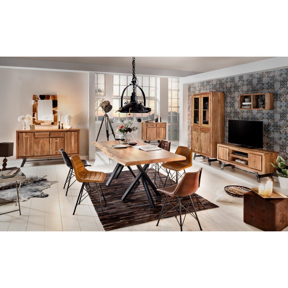 Als u een tafel met karakter en uniekheid wilt, bent u hier aan het juiste adres. Deze eettafel zal niet gemakkelijk terug te vinden zijn. Het tafelblad is gemaakt van massief acaciahout met een natuurlijke boomrand en is zo uniek als de natuur. De natuurplaat maakt bovendien indruk met zijn totale dikte van 56 mm. Het moderne tafelonderstel in het zwart biedt een mooi contrast met het naturel tafelblad, zorgt voor een aangename industriële stijl en combineert gezelligheid met stoerheid. Je eethoek wordt een eyecatcher en een ontmoetingsplek om heerlijke uurtjes door te brengen met familie en vrienden. Hier gebeurt veel meer dan alleen de dagelijkse maaltijden. Let op: Het tafelblad is een natuurproduct. Er kunnen knoestgaten, groeischeurtjes en afwijkende kleurversieringen aanwezig zijn, die geen reden tot klagen zijn maar juist de authenticiteit van het hout onderstrepen. Plaatdikte 56 mm, afstand tussen de poten ca. 18-30 cm, afstand tot de korte zijde onder 19 cm, boven 45 cm, afstand tot de lange zijde onder 10-17 cm, boven 35-38 cm.