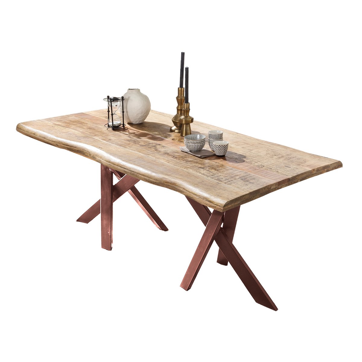 Als u een tafel met karakter en uniekheid wilt, bent u hier aan het juiste adres. Deze eettafel zal niet gemakkelijk terug te vinden zijn. Het massief houten tafelblad is gemaakt van mangohout en is zo uniek als de natuur. De natuurplaat maakt bovendien indruk met zijn totale dikte van 56 mm. Het moderne metalen frame in antiekbruin contrasteert mooi met het naturel tafelblad, zorgt voor een aangename industriële stijl en combineert gezelligheid met stoerheid. Je eethoek wordt een eyecatcher en een ontmoetingsplek om heerlijke uurtjes door te brengen met familie en vrienden. Hier gebeurt veel meer dan alleen de dagelijkse maaltijden. Let op: Het tafelblad is een natuurproduct. Er kunnen knoestgaten, groeischeurtjes en afwijkende kleurversieringen aanwezig zijn, die geen reden tot klagen zijn maar juist de authenticiteit van het hout onderstrepen. Plaatdikte verdubbeld naar 56 mm, rechthoekige buizen 8×4 cm.