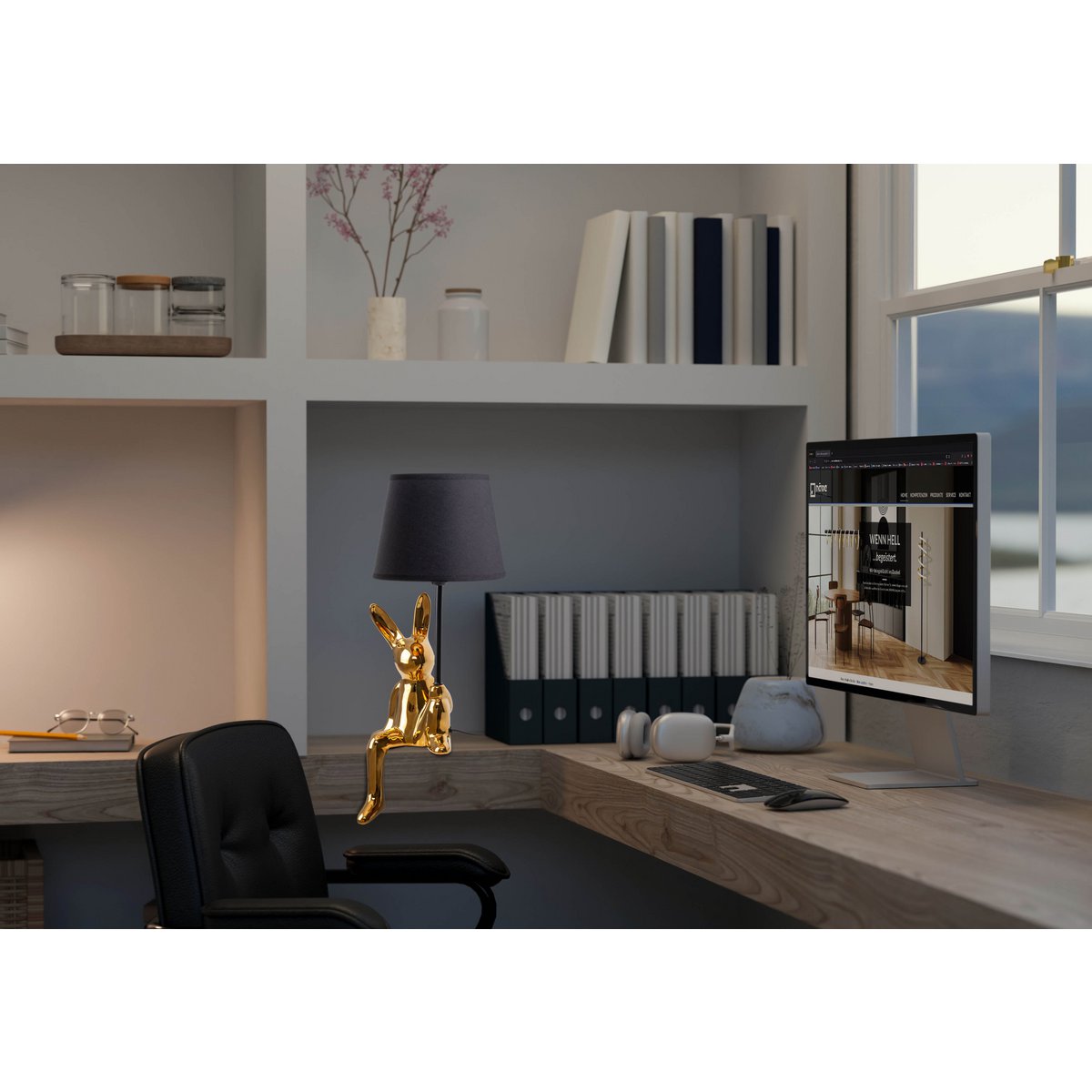 Met dit konijn open je een licht! Als konijnen vaak gezellig, pluche of soms chocolade zijn, is het vrij elegant en zeer glanzend gepolijst. In elk geval valt de konijnenlamp met een masterlamp als een overkoepelende drager uit de zee van de tafellichten op en roept natuurlijk ook andere kijkers op een glimlach in het gezicht.