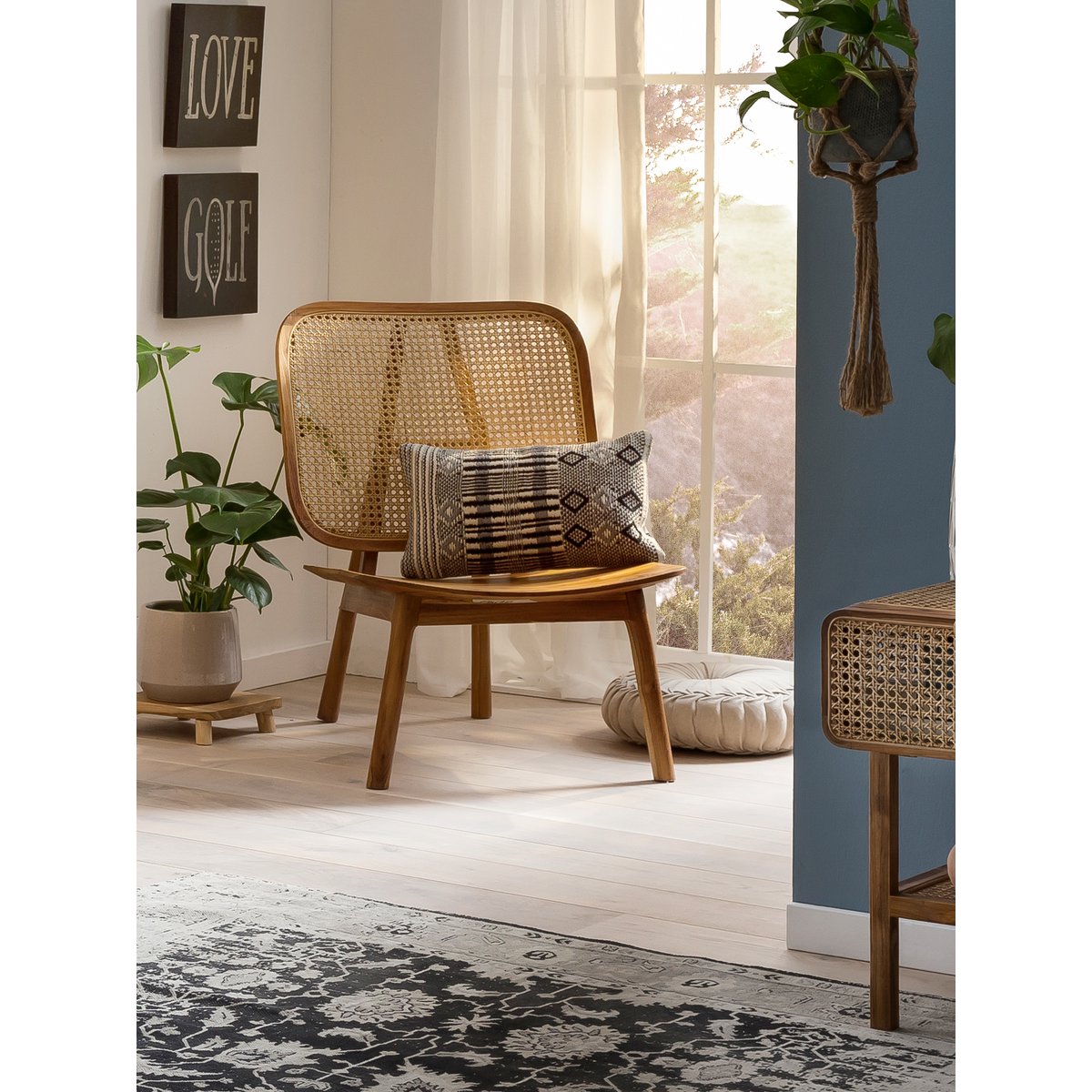 – Materialen: hout, rotan