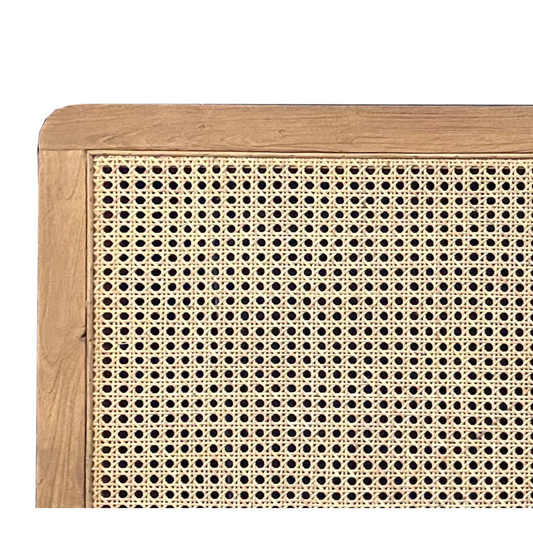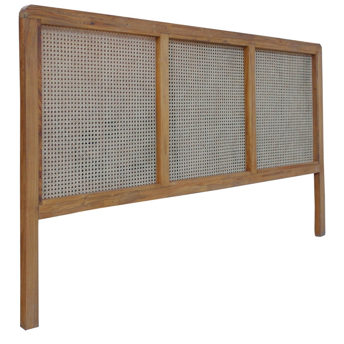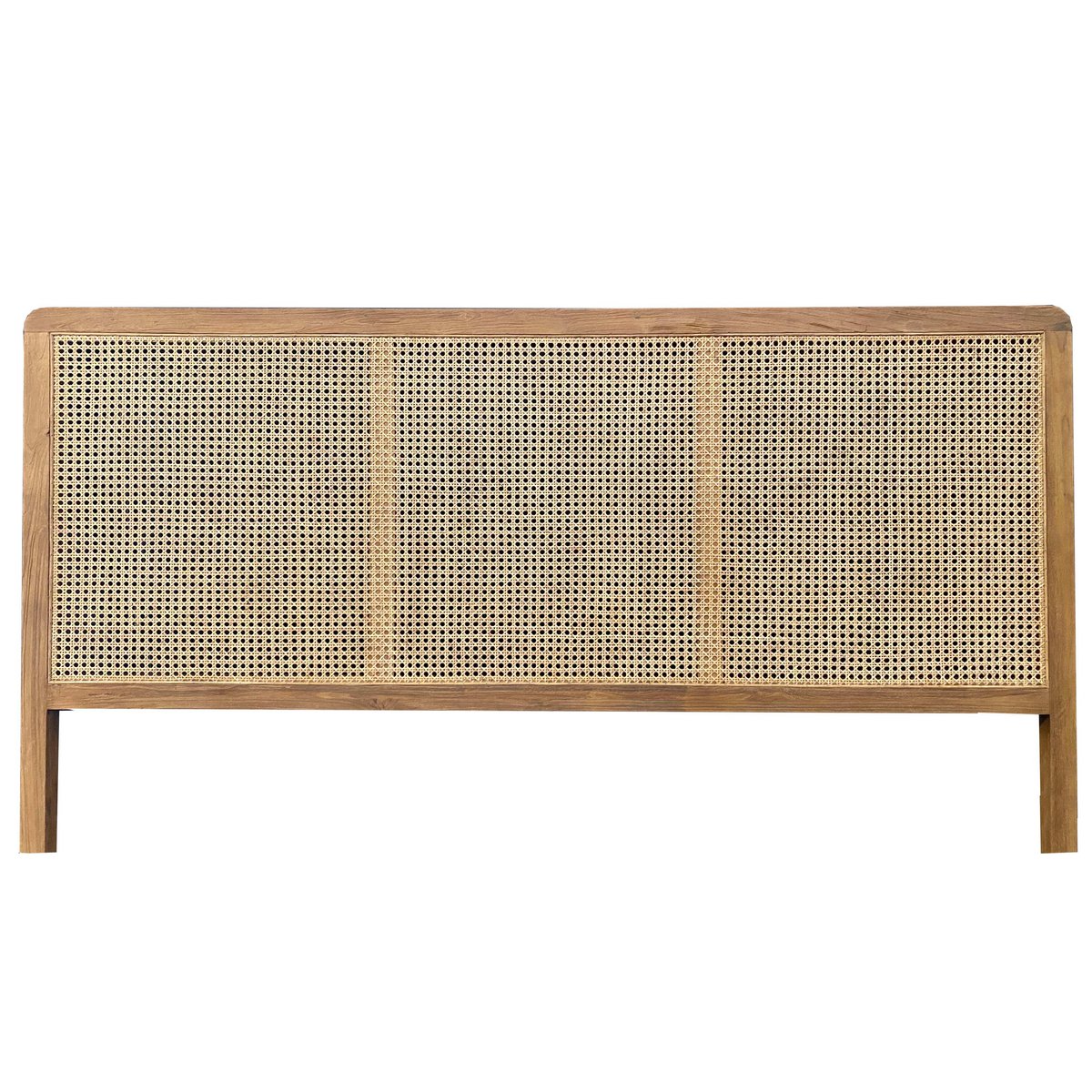 Dit stijlvolle hoofdbord combineert teakhout met rotan vlechtwerk en brengt direct een warme, natuurlijke sfeer in de slaapkamer. Het open geweven rotan zorgt voor een luchtige uitstraling en maakt van het bed een echte blikvanger.