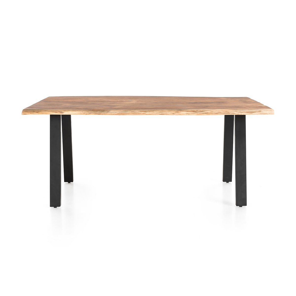 Het stevige matzwarte metalen frame biedt uitstekende stabiliteit en vormt een stijlvol contrast met het warme naturelkleurige hout. Deze eettafel is niet alleen praktisch in gebruik, maar brengt ook een natuurlijke en sfeervolle uitstraling in de eetkamer. Dankzij de afmetingen is de tafel geschikt voor maximaal 6 personen.