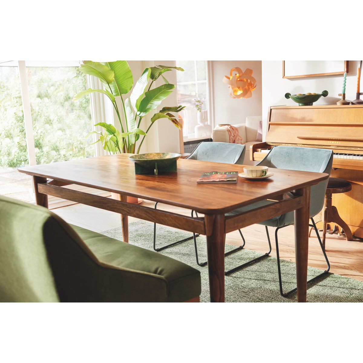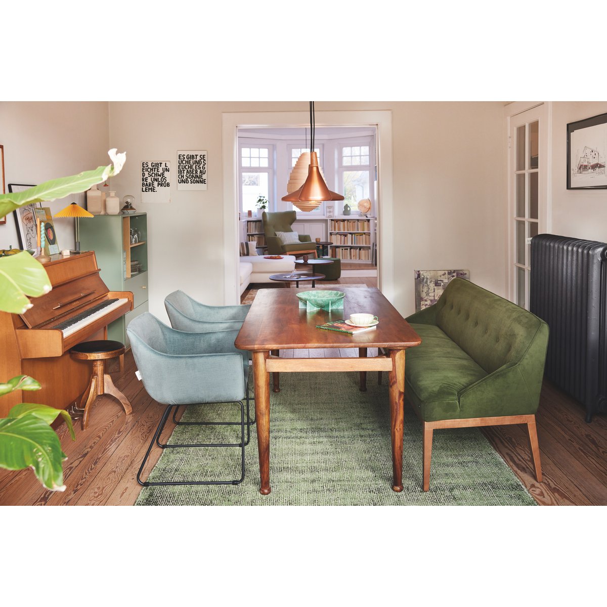 – Hoogwaardige zeegroene stoffering met rustige en eigentijdse uitstraling