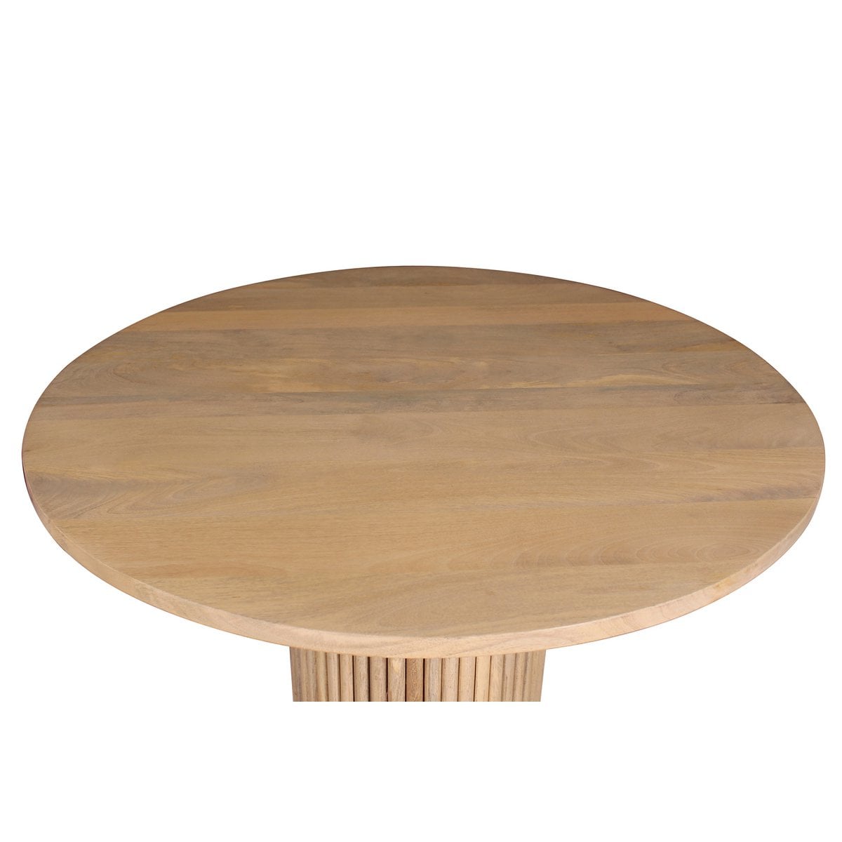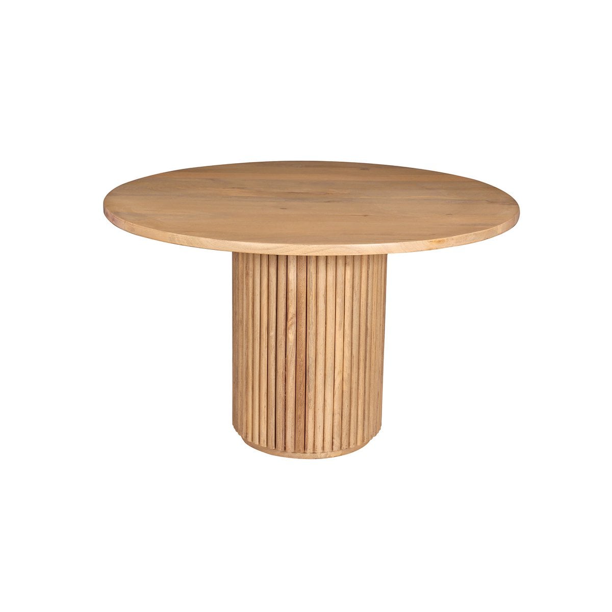 De hoogwaardige eettafel T-RIBBED TABLE ROUND van TOM TAILOR combineert een eigentijds design met natuurlijke warmte. Het ronde tafelblad van FSC-gecertificeerd mangohout vormt samen met het opvallende geribbelde kolomonderstel een stijlvol geheel dat direct in het oog springt. Door zijn warme bruine uitstraling past deze tafel harmonieus in moderne, stedelijke en natuurlijke interieurs.