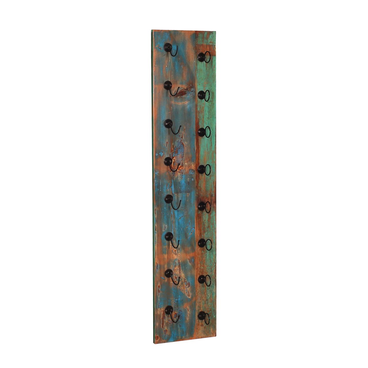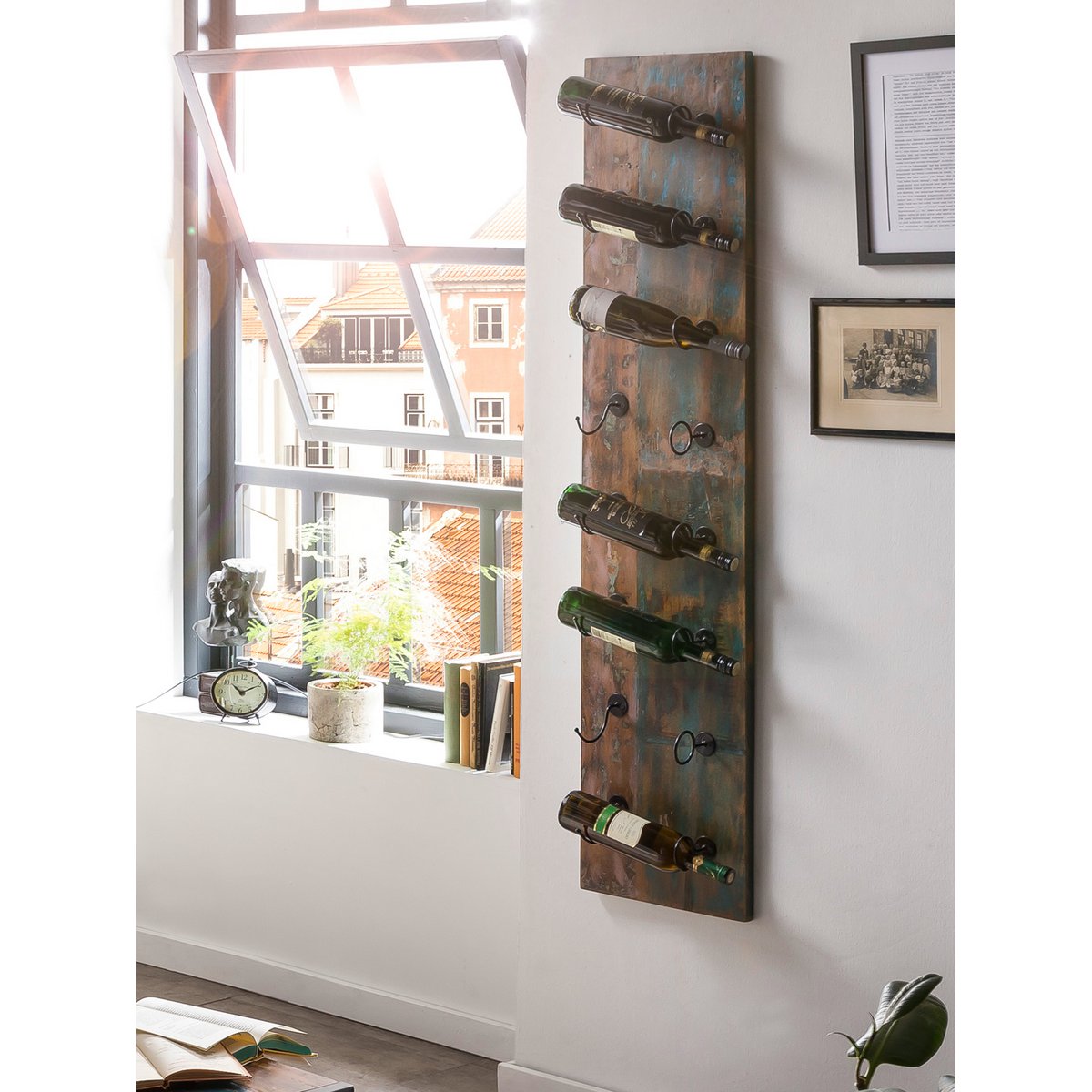 Met dit praktische wand wijnrek bergt u tot 8 wijnflessen tegelijk ruimtebesparend en decoratief op. Het kleurrijk geschilderde gerecyclede hout geeft dit rek een levendige en sfeervolle uitstraling, waardoor het niet alleen functioneel is, maar ook direct karakter toevoegt aan uw keuken, eetkamer of woonkamer. In combinatie met mooie wijnflessen ontstaat een warme en gezellige sfeer aan de muur.