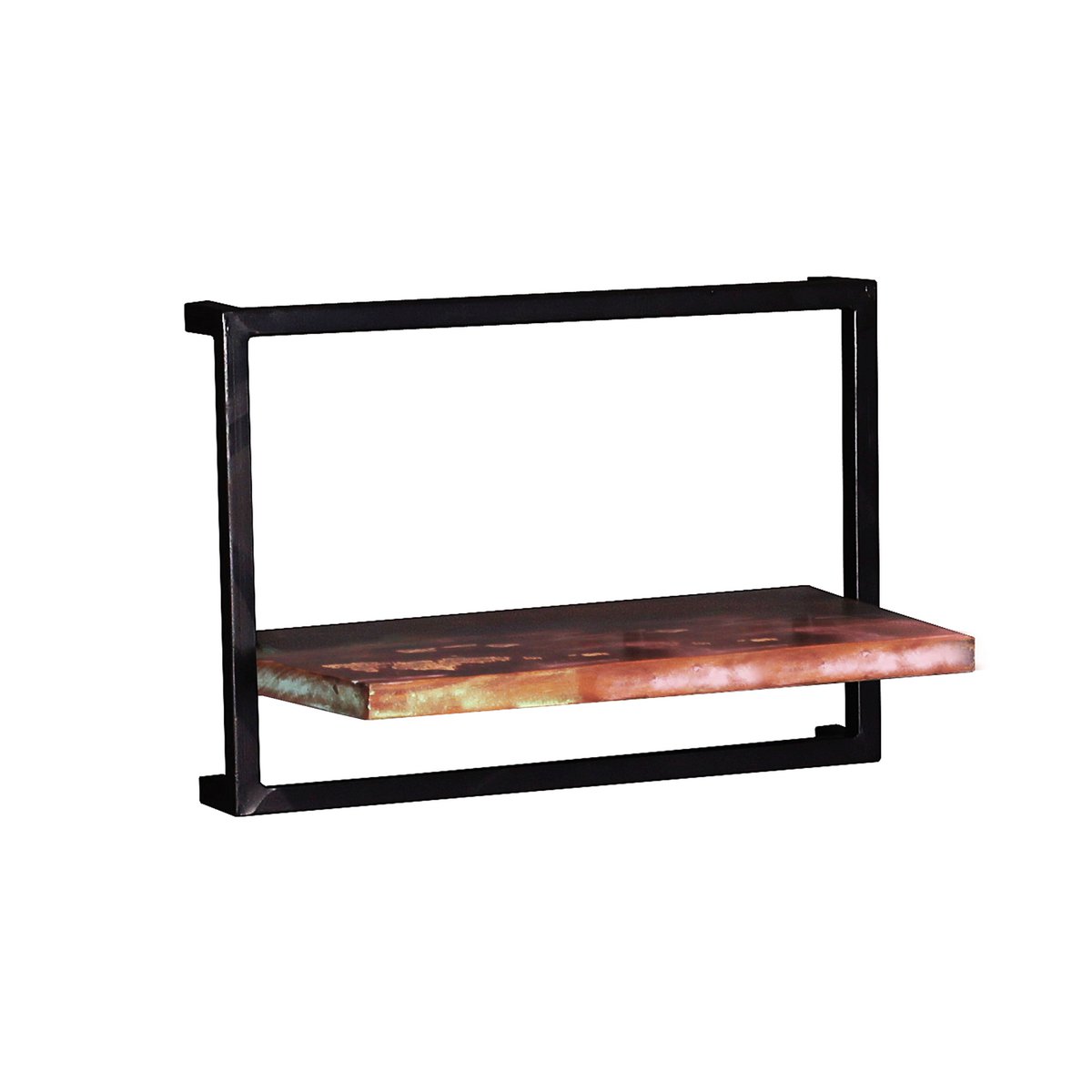 Deze moderne wandplank van gerecycled oud hout met een antiek zwart metalen frame kun je geheel individueel ophangen, bijvoorbeeld gecombineerd met meerdere planken of planken in verschillende maten en designs. Dit betekent dat u uw creativiteit de vrije loop kunt laten en uw muren kunt verfraaien. De industriële look gecombineerd met de kleurrijke shabby chic is een absolute eyecatcher. De massief houten plank is veelzijdig inzetbaar en kan bovendien in meerdere kamers gebruikt worden. Gemaakt van FSC-gecertificeerd hout. gemaakt van kleurrijk oud hout