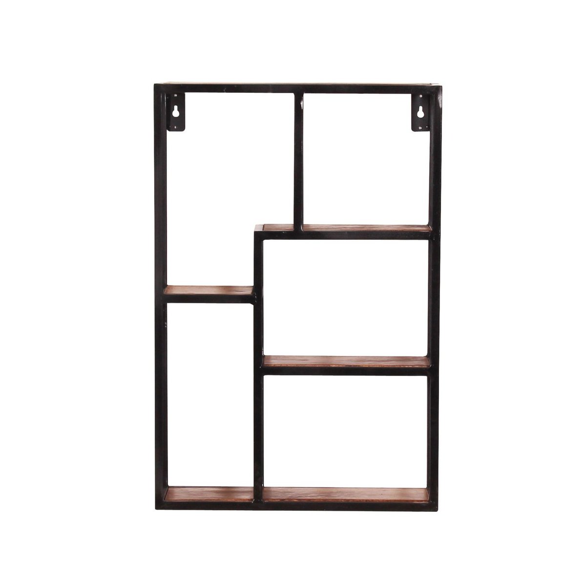 Deze moderne wandplank van naturelkleurig mangohout met antiek zwart sloopmetalen frame kun je geheel persoonlijk ophangen. Dit betekent dat u uw creativiteit de vrije loop kunt laten en uw muren kunt verfraaien. De fabrieksstijl is een absolute blikvanger en de asymmetrische vorm is een blikvanger in elke sfeer. De massief houten plank is veelzijdig en kan in een grote verscheidenheid aan kamers worden gebruikt. Of het nu in de woonkamer, eetkamer of hal is: deze wandplank komt overal op zijn best tot zijn recht. 4 opbergruimtes van verschillende afmetingen.