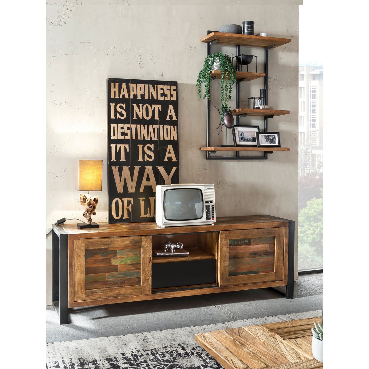 Doordat gebruik wordt gemaakt van gerecycled hout, helpt dit meubel mee om jonge bomen te sparen en krijgt bestaand materiaal een tweede leven. Dit maakt de wandplank niet alleen stijlvol, maar ook een bewuste keuze.