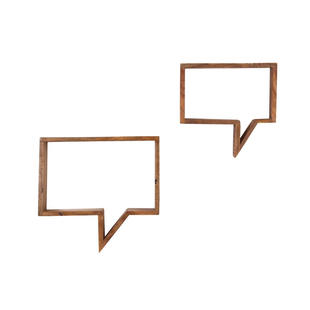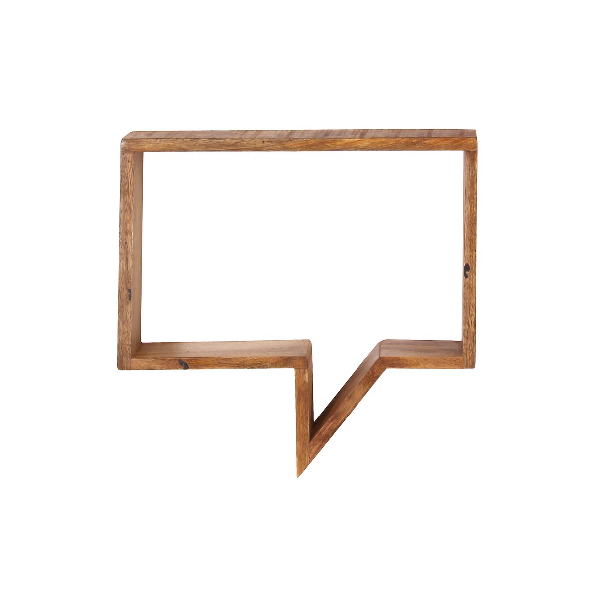 Met deze opvallende wandplank geef je je muur direct een speelse en stijlvolle uitstraling. Het frame is gemaakt van mangohout, een sterke en robuuste houtsoort die bekendstaat om zijn duurzaamheid en karaktervolle look. Dankzij het bijzondere ontwerp in de vorm van een komische tekstballon is deze wandplank niet alleen praktisch, maar ook een echte blikvanger in huis.