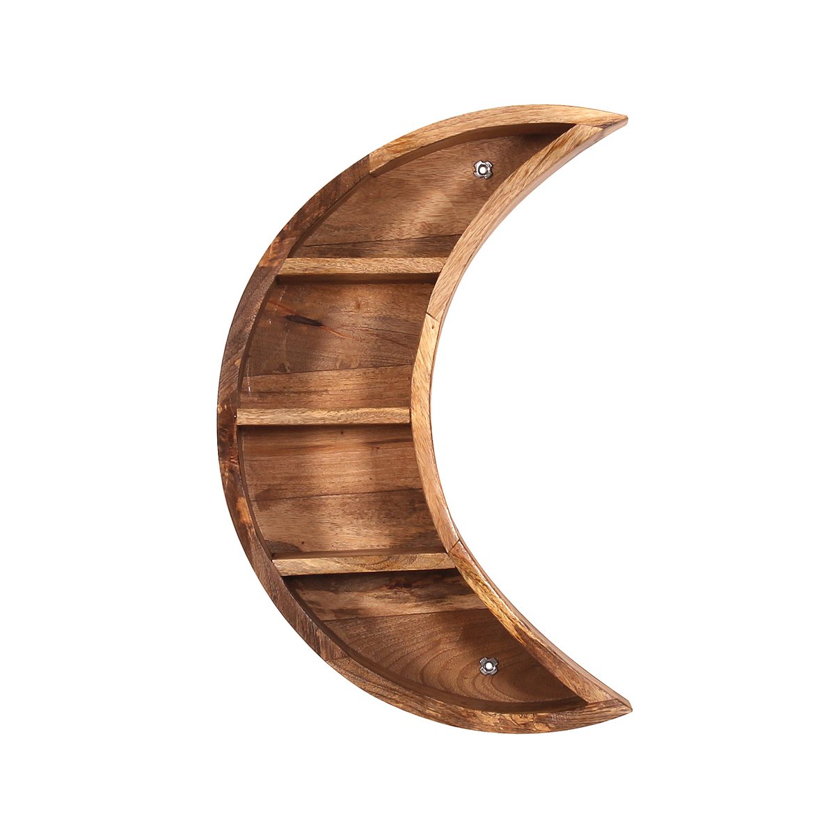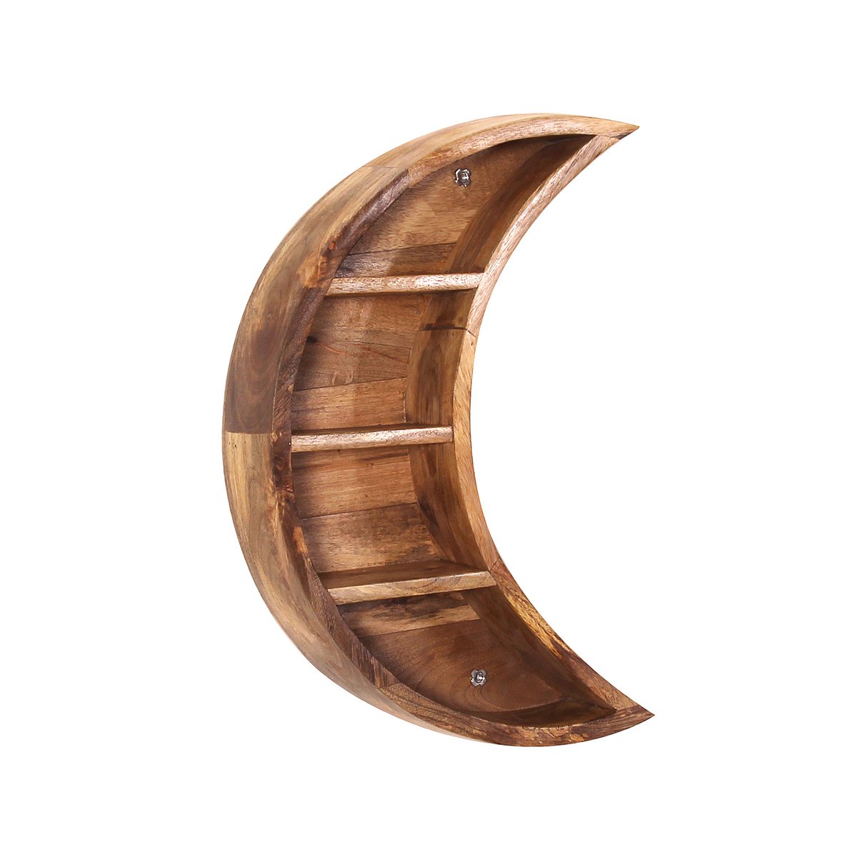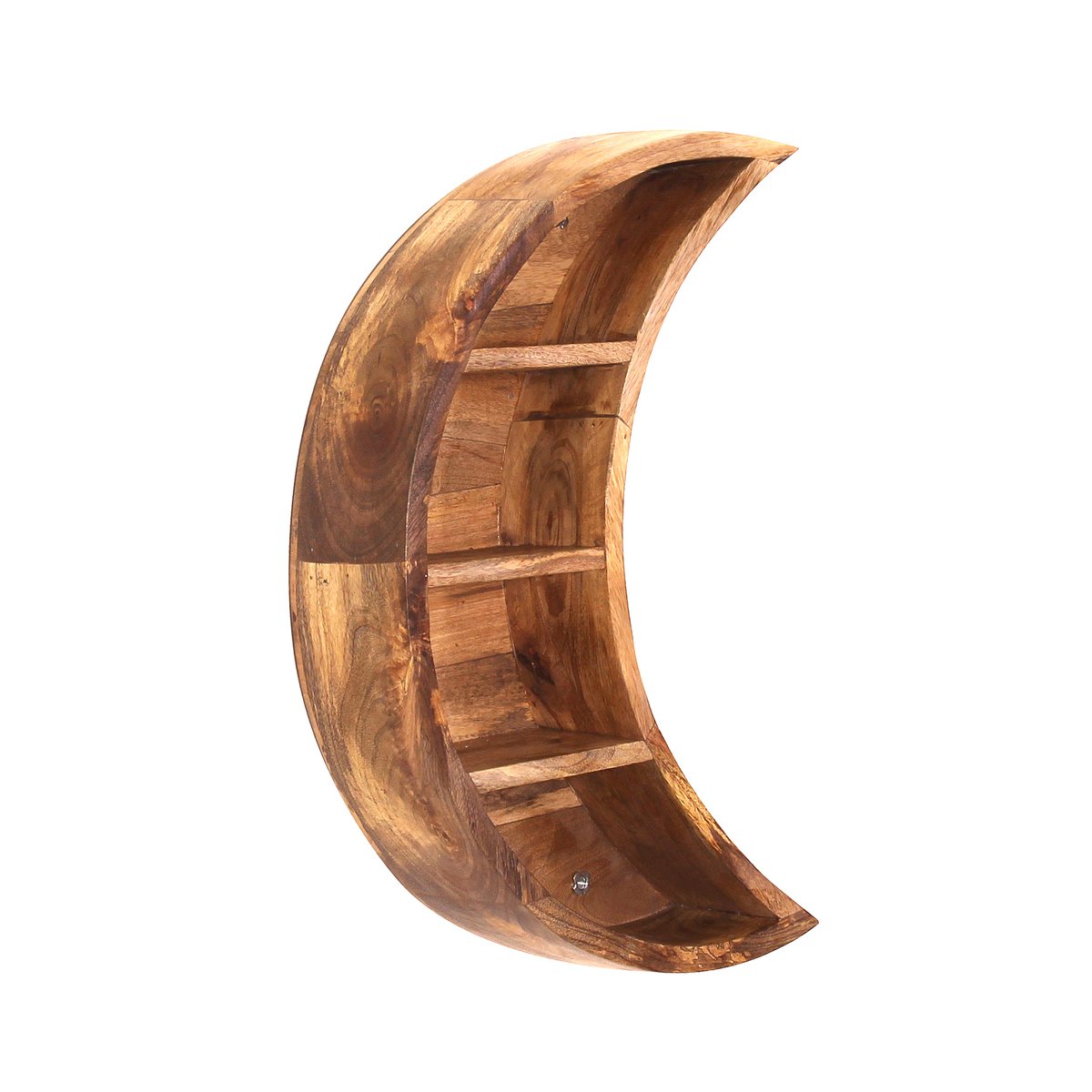 Met deze wandplank presenteer je je favoriete stukken in stijl en geef je je muren een heel bijzonder tintje. Het frame is gemaakt van mangohout. Dit ziet er niet alleen elegant uit, het is ook zeer robuust en stabiel. Dankzij de veelzijdigheid kan de plank vrijwel overal worden gebruikt. Een bijzondere blikvanger is de vorm van een maansikkel. Waar de wandplank ook wordt geïnstalleerd, hij is zeker een visuele blikvanger. –
