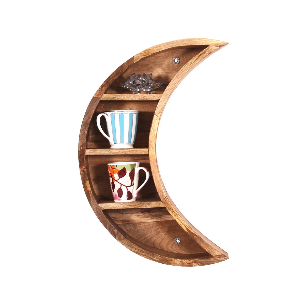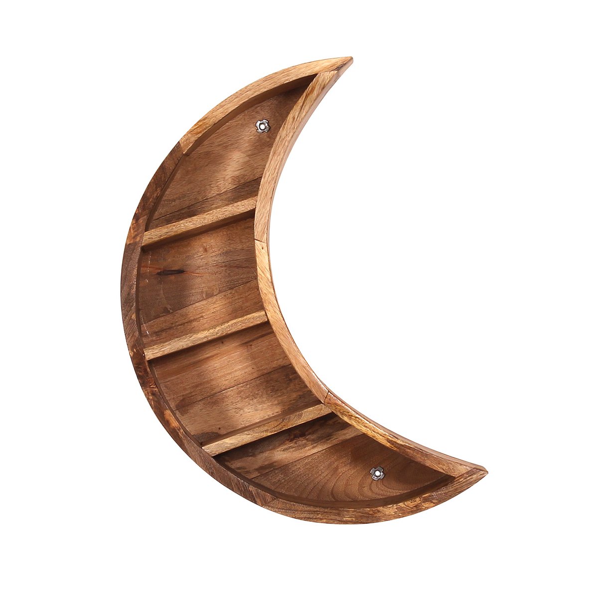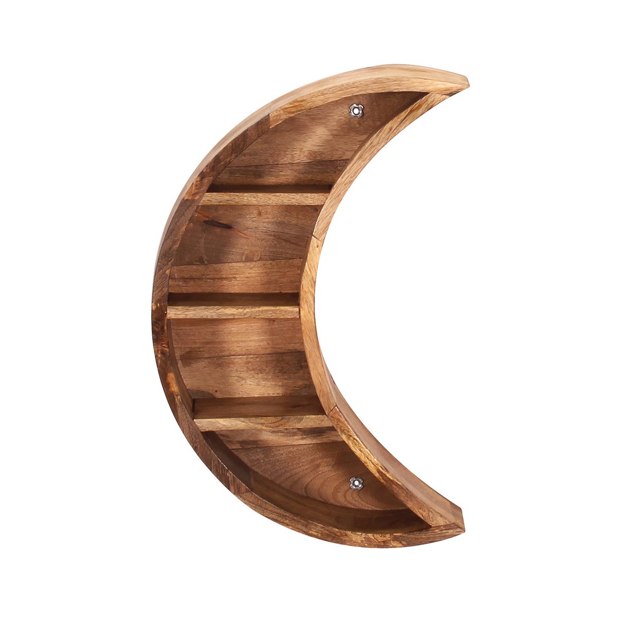 Met deze wandplank presenteer je je favoriete stukken in stijl en geef je je muren een heel bijzonder tintje. Het frame is gemaakt van mangohout. Dit ziet er niet alleen elegant uit, het is ook zeer robuust en stabiel. Dankzij de veelzijdigheid kan de plank vrijwel overal worden gebruikt. Een bijzondere blikvanger is de vorm van een maansikkel. Waar de wandplank ook wordt geïnstalleerd, hij is zeker een visuele blikvanger. –