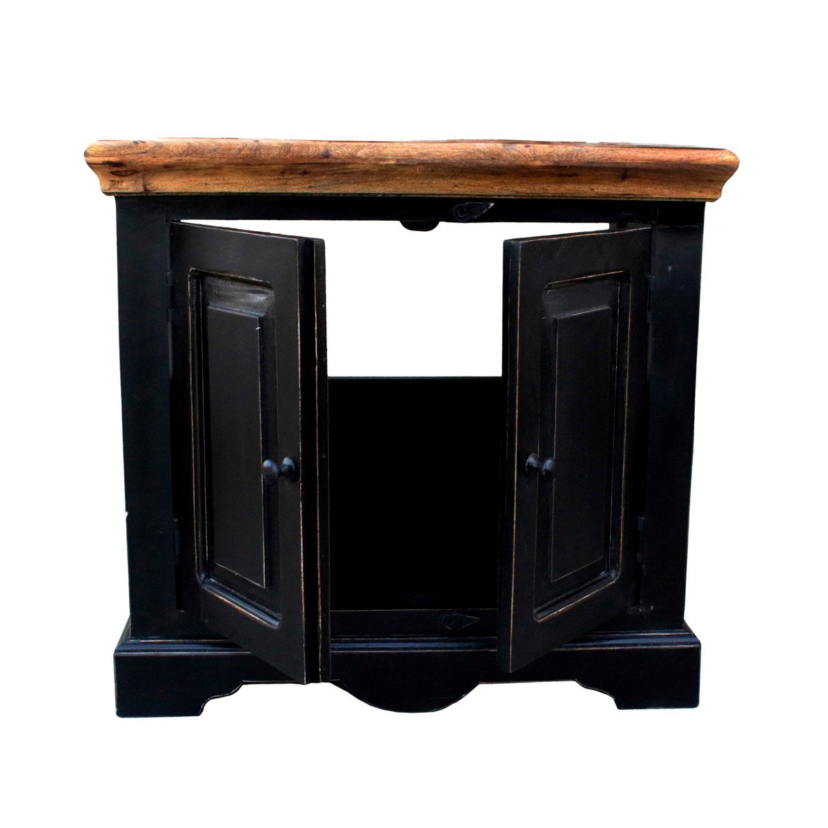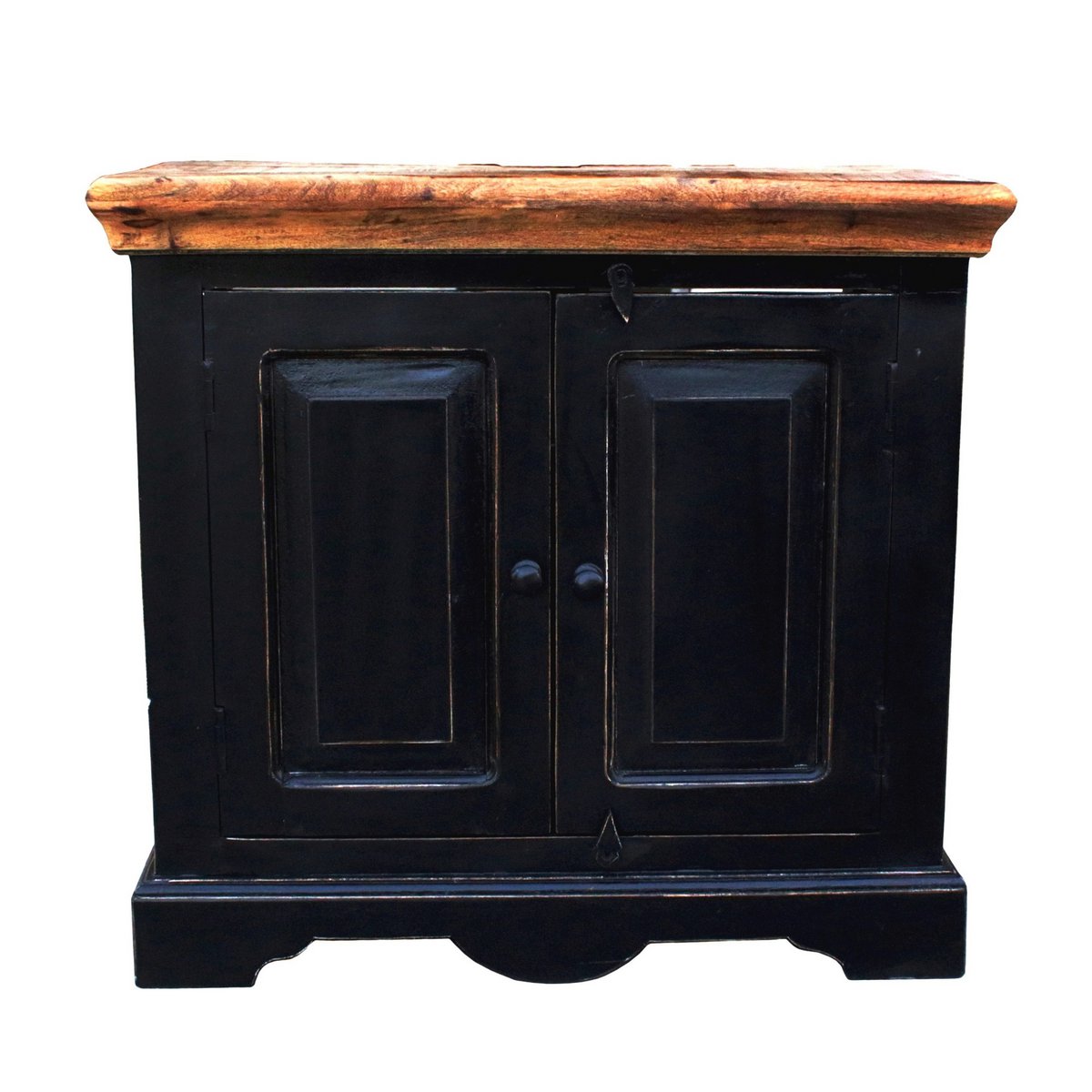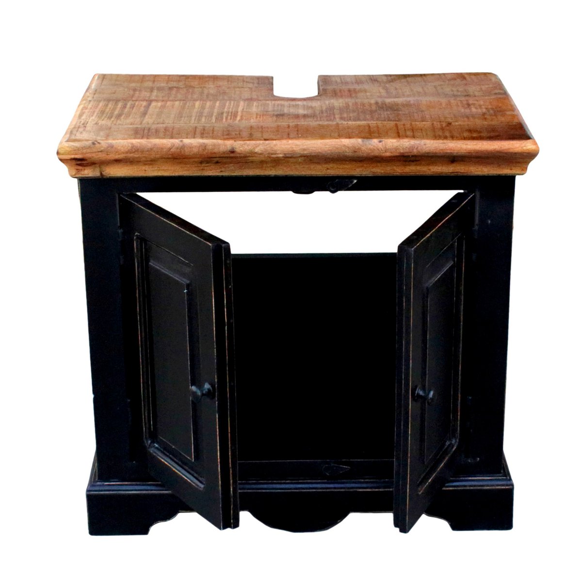 – Wastafelkast van zwart mangohout met honingkleurig bovenblad