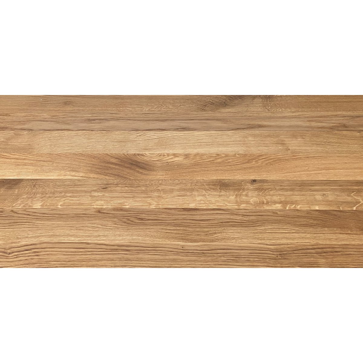 Dit rechthoekige tafelblad van wild eikenhout heeft een sterke, levendige nerf en een natuurlijke uitstraling. Dankzij het compacte formaat is het blad veelzijdig inzetbaar, bijvoorbeeld als bistrotafel of als basis voor een stijlvolle bijzettafel. De heldere houtstructuur geeft elk interieur een warme en authentieke touch.