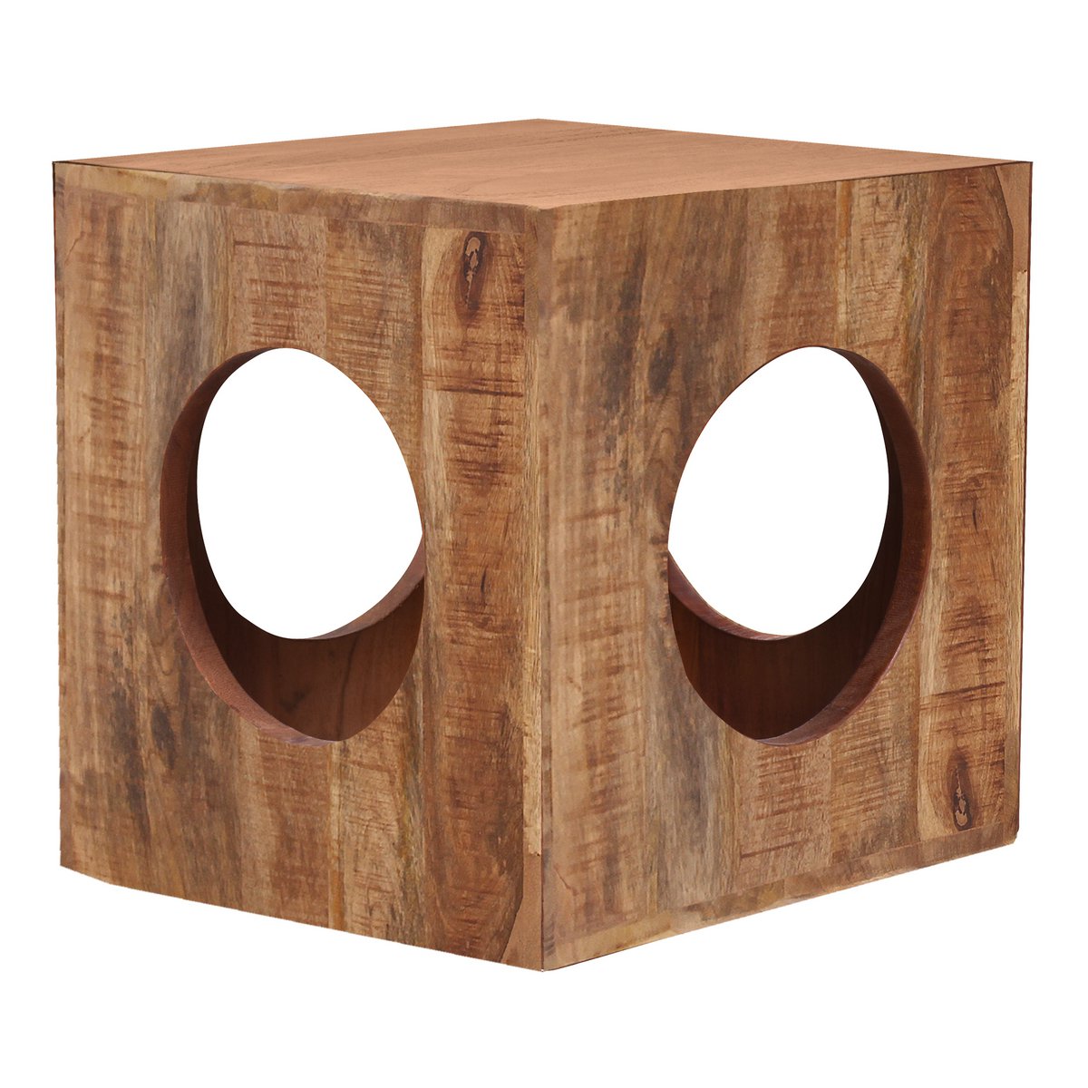 Deze bijzettafel van hoogwaardig mangohout in een elegante natuurlijke tint overtuigt door zijn doordachte design. Mangohout wordt gekenmerkt door een hoge hardheid, waardoor het veerkrachtig en duurzaam is. Het hout biedt bovendien een elegante uitstraling en een gevarieerde nerf. Door het formaat van de salontafel is hij ruimtebesparend en ideaal voor kleinere ruimtes. De tafel is tegelijkertijd verfijnd en praktisch. Vier ronde openingen zorgen voor toegang tot de opbergruimte in de tafel – een echte blikvanger. Hier verdwijnen boeken, dekens, afstandsbedieningen etc. van het tafelblad en zijn ze tegelijkertijd snel toegankelijk.
