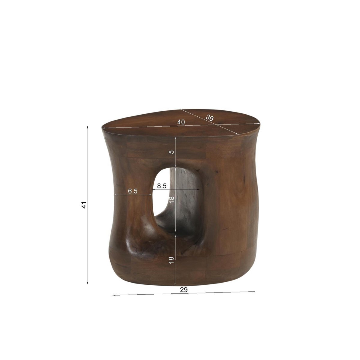 De bijzettafel gemaakt van massief mango -hout is niet alleen een functioneel meubel, maar ook een stijlvol accent voor uw huis. Met zijn asymmetrische vorm en een open compartiment combineert het modern ontwerp met praktische functies en brengt het tegelijkertijd een warme, natuurlijke straling in elke kamer. Gemaakt van massief mango -hout, deze bijzettafel biedt uitstekende duurzaamheid en stabiliteit. De bruine kleur van het hout toont een fijne korrel die elke tabel een individuele noot geeft. Het asymmetrische ontwerp van de tafel is een echt hoogtepunt en zorgt voor een moderne, creatieve uitstraling. De onconventionele vorm breekt met traditionele tafelontwerpen en trekt de aandacht. Deze bijzettafel is ideaal voor iedereen die de buitengewone geliefde wil ontwerpen en hun leefruimte individueel wil maken. Of het nu gaat om een bijzettafel in de woonkamer, als een nachtkastje in de slaapkamer of als een decoratief element in een leeshoek – deze tafel is veelzijdig. Zijn moderne esthetiek en de functionele aspecten maken hem een ideale metgezel in elke kamer. Afmetingen van de opening: ongeveer. naar de onderkant opening: ongeveer 18 cm