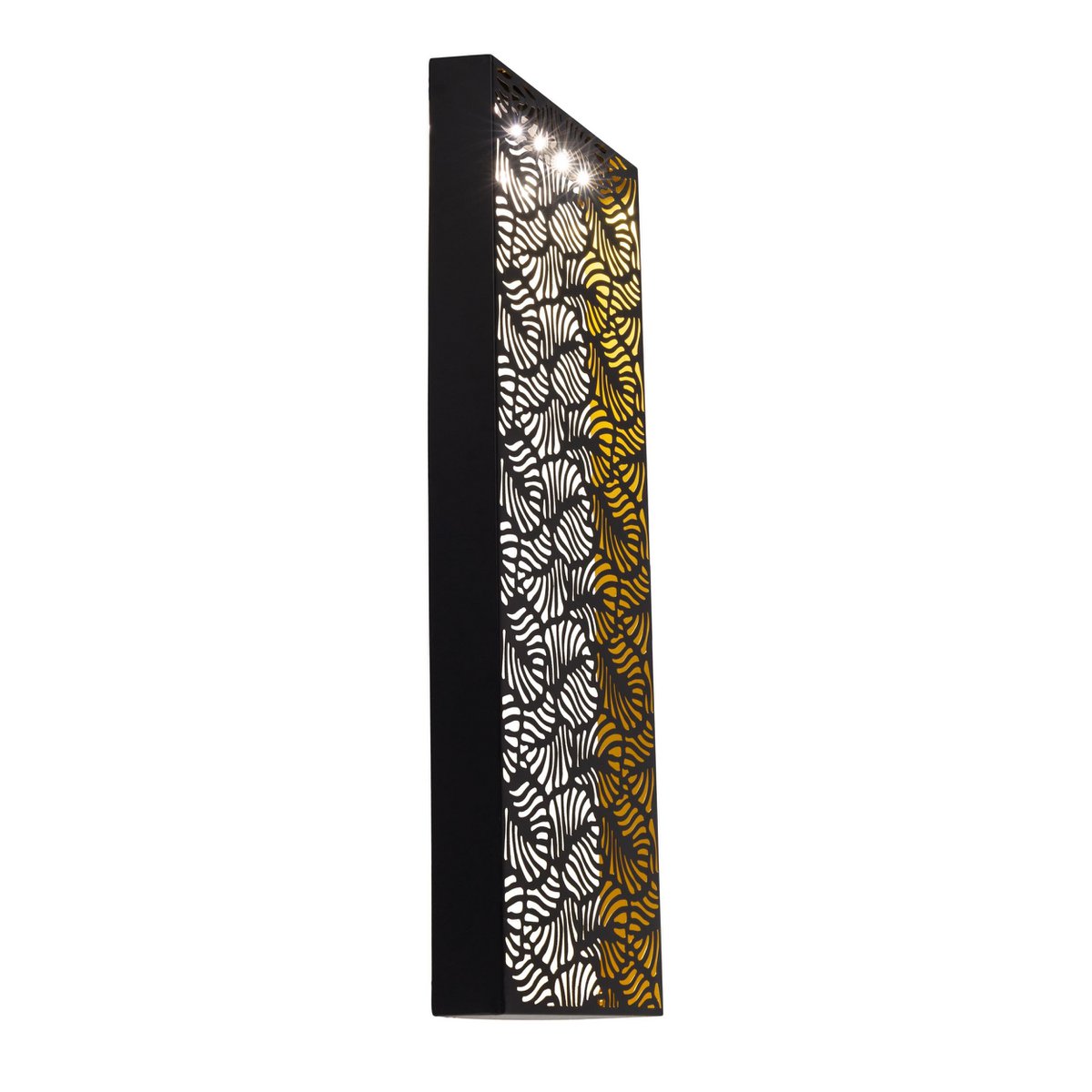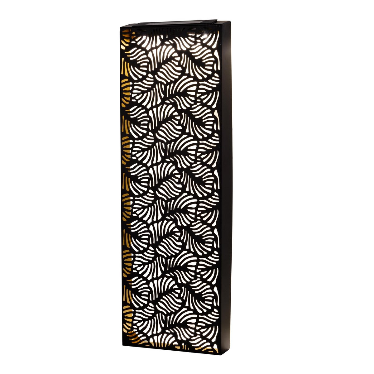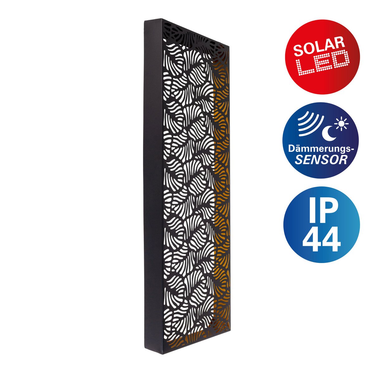 Stel accenten in, structureer de buitenruimte met de buitengewone zonne- /decollicht “IMA”. Een helder oppervlak gemaakt van black metal, decoratief door een herhalend patroon, resulteert in een stemming die haar buitenleven maakt.